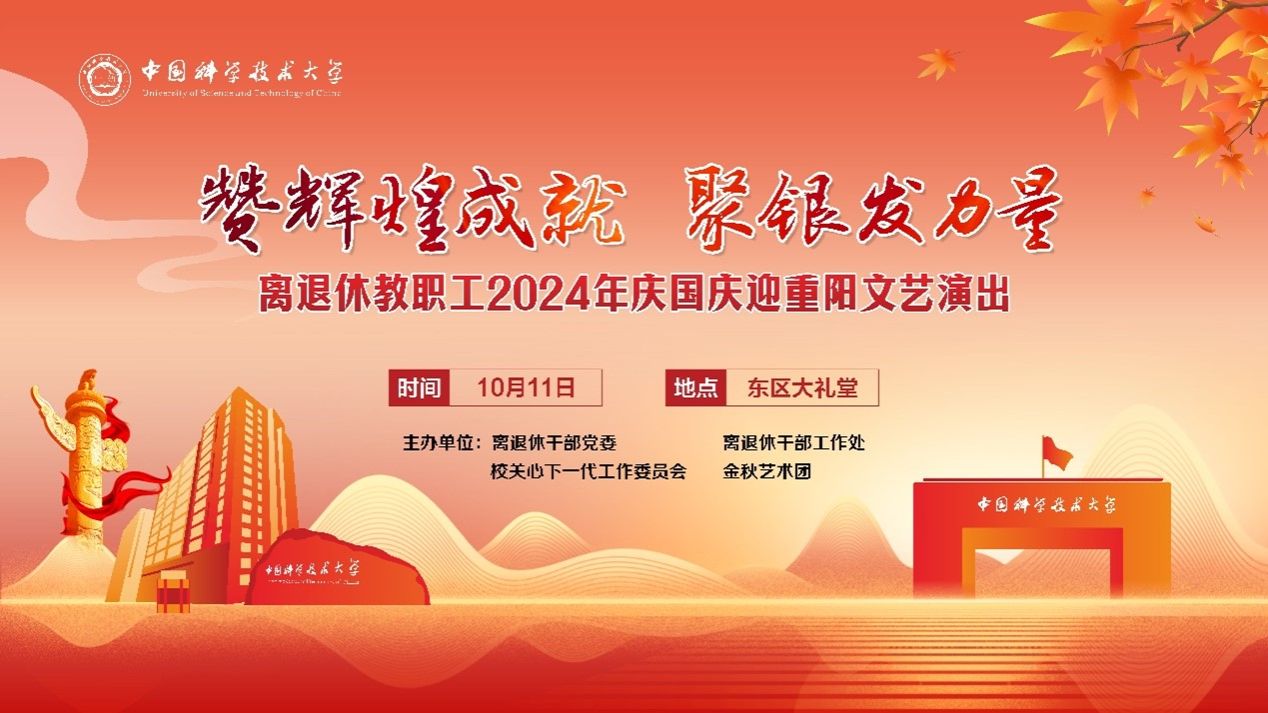 金秋国庆,情暖重阳。为庆祝中华人民共和国成立75周年、中国科学院建院75周年及乐鱼官网首页入口建校66周年,在重阳佳节来临之际,离退休干部党委、离退休干部工作处联合校关心下一代工作委员会、金秋艺术团举办“赞辉煌成就 聚银发力量”离退休教职工2024年庆国庆迎重阳文艺演出。本次演出旨在传承尊老、敬老、爱老、助老的中华传统美德,推进新时代文明建设,丰富离退休教职工精神文化生活。