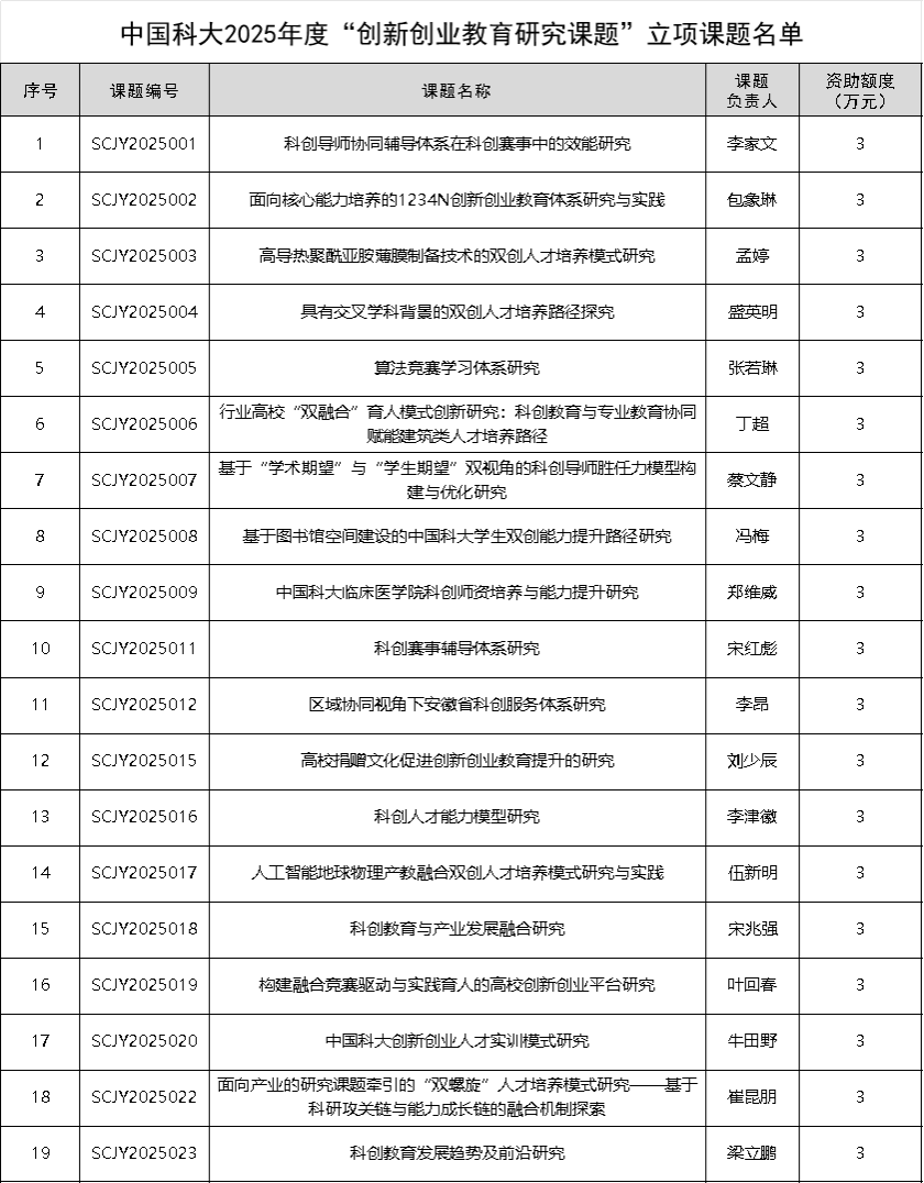 乐鱼官网首页入口2025年度“创新创业教育研究课题”申报评审工作已顺利结束,经过课题申报、资格审查、专家评审、立项公示、预立项等环节,最终确定“科创导师协同辅导体系在科创赛事中的效能研究”等19个课题为我校2025年度“创新创业教育研究课题”,予以资助。