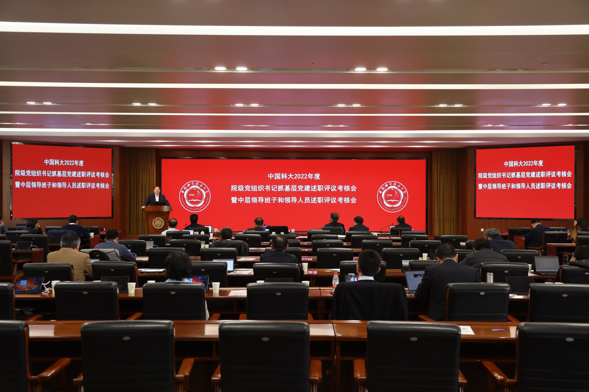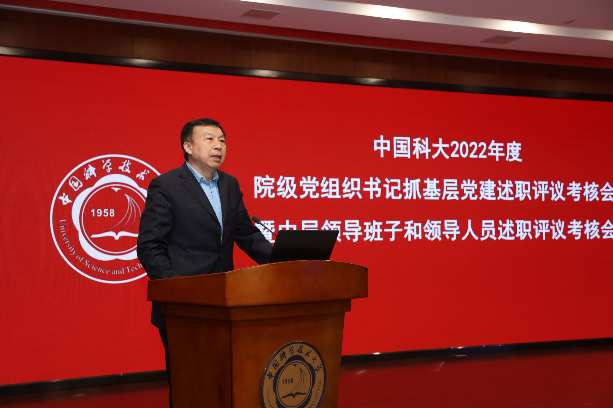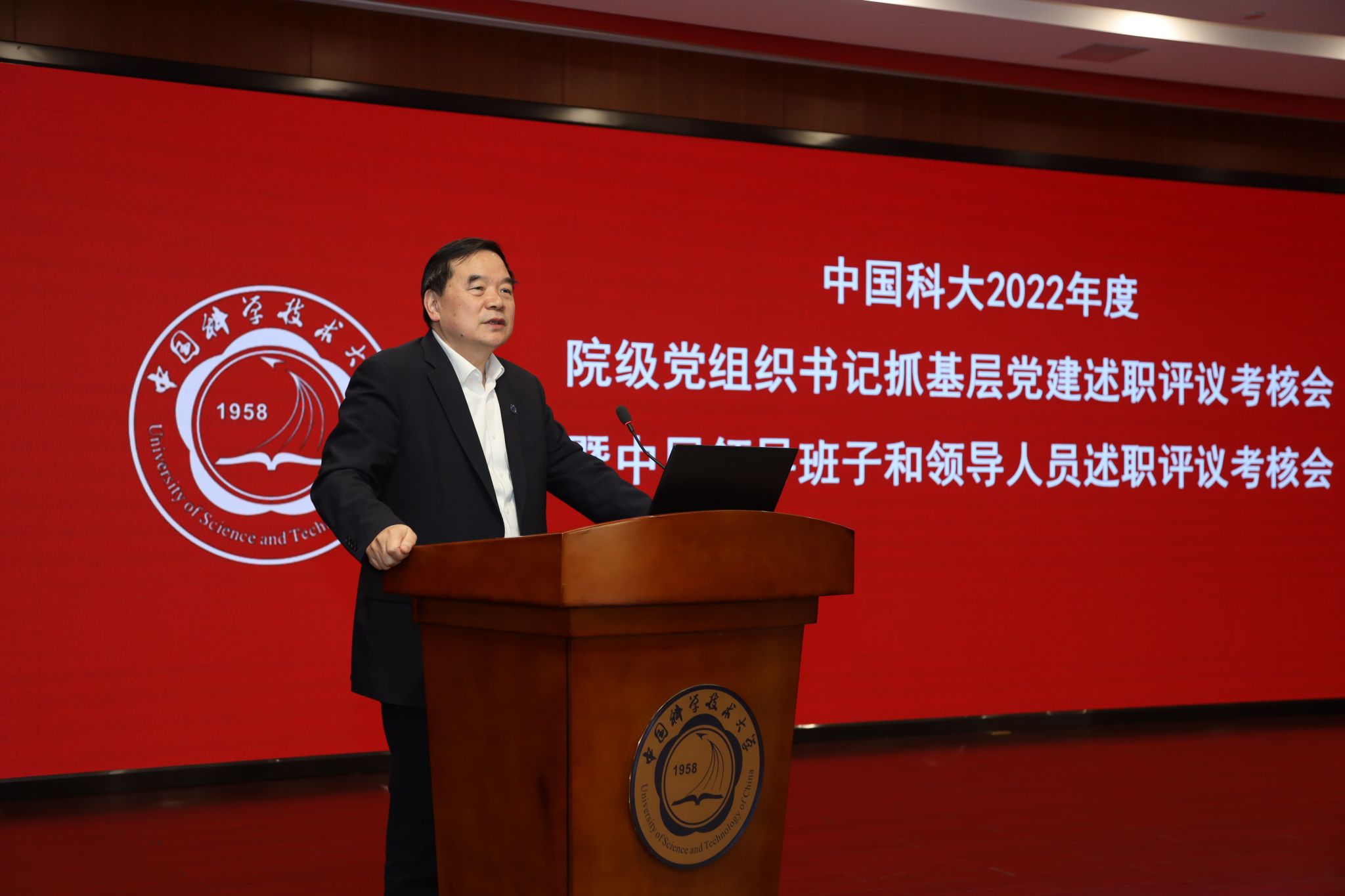 3月30日至31日,学校在东活五楼报告厅召开2022年度院级党组织书记抓基层党建述职评议考核暨中层领导班子和领导人员述职评议考核会。党委书记舒歌群、校长包信和出席会议并逐一进行点评,会议由党委常务副书记、党委组织部部长蒋一主持,在校校领导,学院和重点科研机构党政主要负责人,机关部门、直附属单位主要负责人等参加了会议。