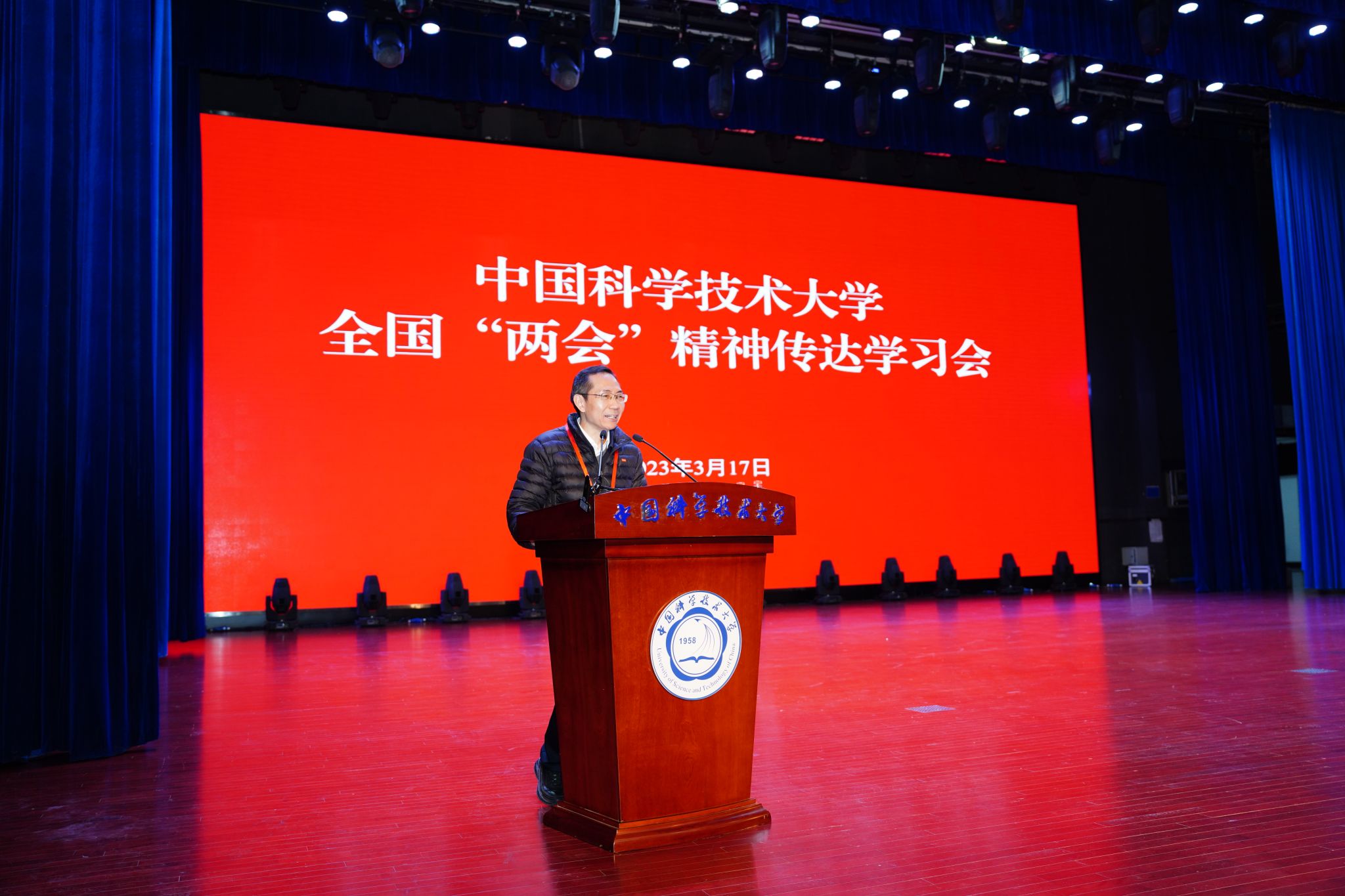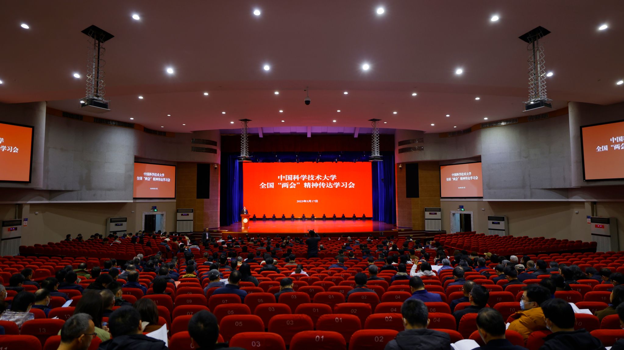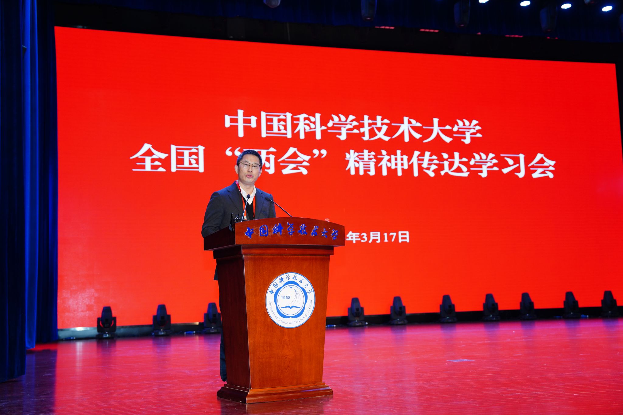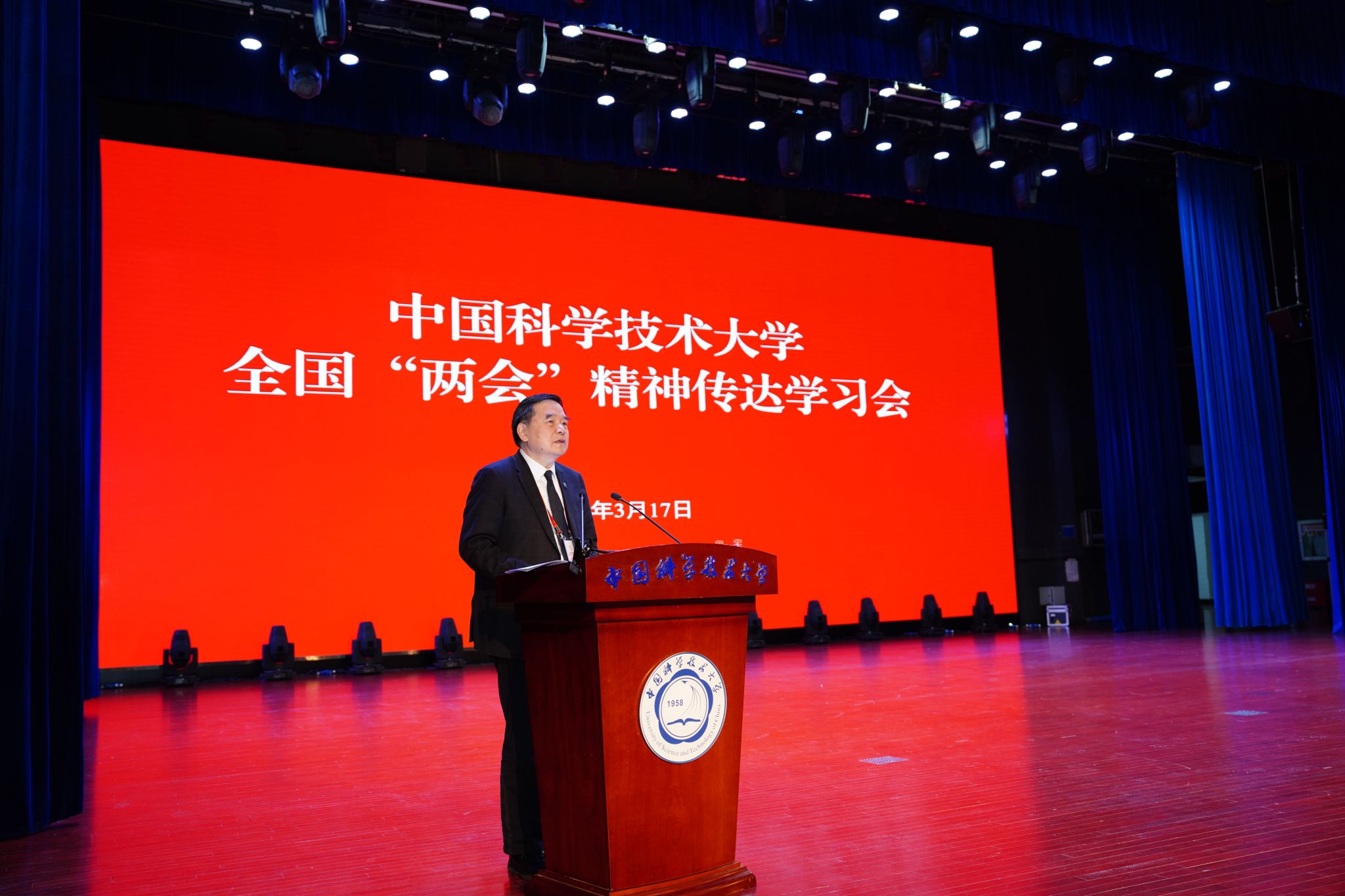 3月17日上午,乐鱼官网首页入口全国“两会”精神传达学习会在东区大礼堂举行。校党委书记舒歌群出席会议,全国人大常委、中科院院士、校长包信和,全国政协委员、中科院院士、副校长杨金龙,分别传达十四届全国人大一次会议精神和全国政协十四届一次会议精神。在校校领导,两院院士、教授及相当专业技术职务人员,校学术、学位、教学委员会委员,校党委、纪委委员,各学院、系、重点科研机构、机关各部门、直属单位党政负责人,全国、安徽省人大代表、政协委员,各民主党派负责人参加会议。校党委常委、副校长周丛照主持会议。