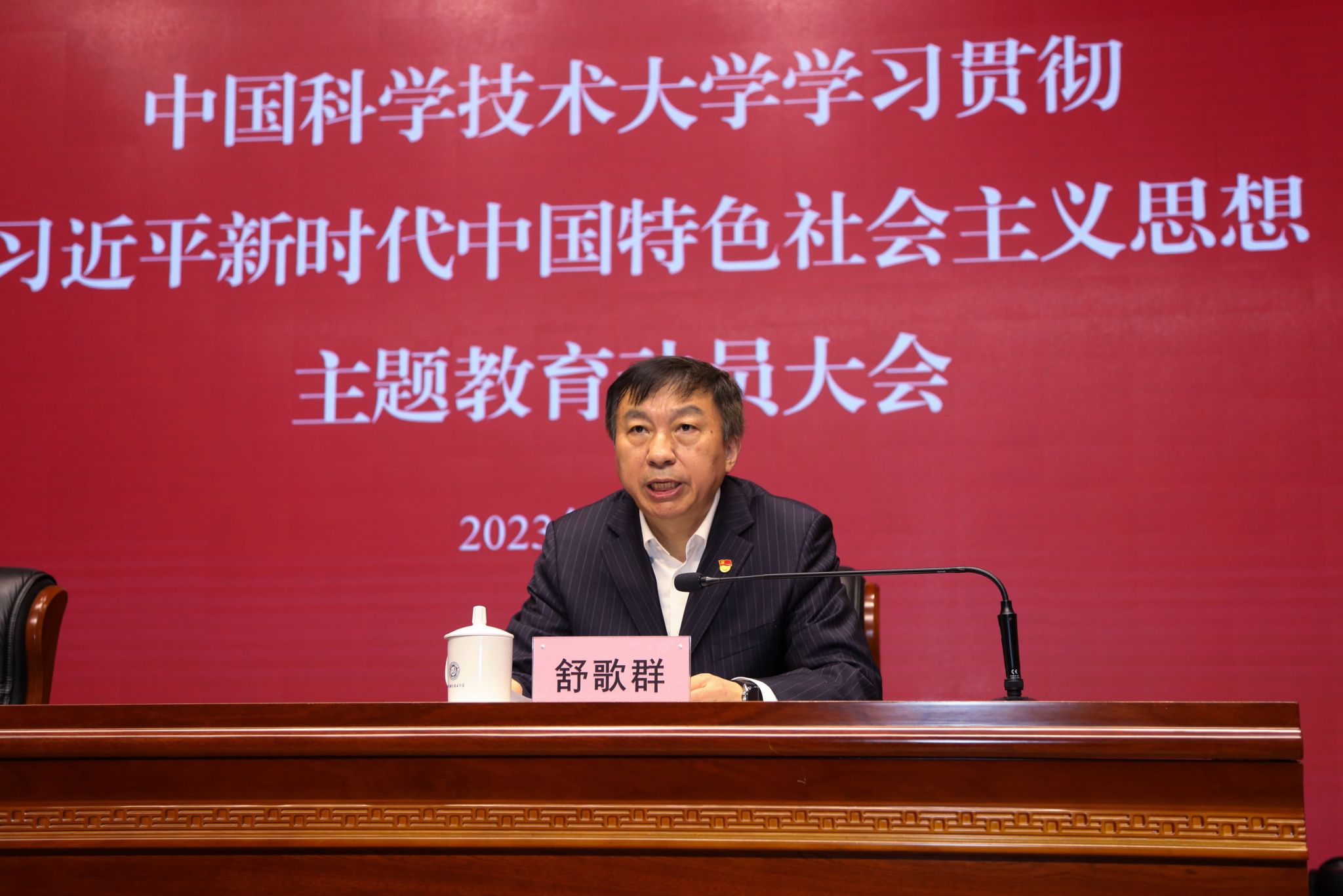 舒歌群指出,开展学习贯彻习近平新时代中国特色社会主义思想主题教育,是党的二十大作出的重大部署。根据中央安排,乐鱼官网首页入口作为中管高校纳入主题教育第一批开展单位。全校各级党组织和广大党员领导干部要紧紧围绕党中央部署,紧扣立德树人根本任务,将开展主题教育与深入学习贯彻党的二十大精神结合起来,与推动学校改革发展各项事业结合起来,突出目标导向和问题导向,不划阶段、不分环节,把理论学习、调查研究、推动发展、检视整改贯穿主题教育全过程,确保主题教育取得扎实成效。一是深刻领会主题教育的重大意义,把思想和行动统一到习近平总书记重要讲话精神和党中央决策部署上。要以高度的政治自觉和责任担当,把扎实开展主题教育作为坚定拥护“两个确立”、坚决做到“两个维护”的实际行动,不断提高政治判断力、政治领悟力、政治执行力,真正做到以学铸魂、以学增智、以学正风、以学促干。二是坚决扛起主题教育的政治责任,高标准高质量推动主题教育取得实效。要牢牢把握“学思想、强党性、重实践、建新功”的总要求,坚持学思用贯通、知信行统一,着力解决在理论学习、政治素质、能力本领、担当作为、工作作风、廉洁自律等6个方面的突出问题,全力做好主题教育的组织领导、统筹协调、督促落实、建章立制等工作,一体推进理论学习、调查研究、推动发展、检视整改,让党员干部真正在思想上受教育、能力上有提升、工作上见实绩。三是坚持主题教育两手抓、两促进,加快建设中国特色、科大风格的世界一流大学。要把广大师生员工满意不满意作为根本评判标准,坚持领导带头真抓实干,各部门各单位形成合力一级带着一级干,将主题教育同深入贯彻落实党的二十大精神结合起来,同贯彻落实习近平总书记关于中国科大系列重要指示精神结合起来,同解决关系学校发展和师生员工切身利益的难点痛点堵点结合起来,认真开展专项整治和整改落实,将开展主题教育转化为推动学校高质量发展的强大力量。舒歌群表示,全校各级党组织要振奋精神、全心投入,在中央第五十四指导组的指导下,把主题教育成效转化成干事创业的强大动力,作为检验全面落实党的二十大精神,推进“教育、科技、人才”一体化部署的有效举措,确保主题教育高质量开展,实现目标要求,取得预期效果,为学校落实立德树人根本任务,实现高质量发展发挥推动作用、提供坚强保障。