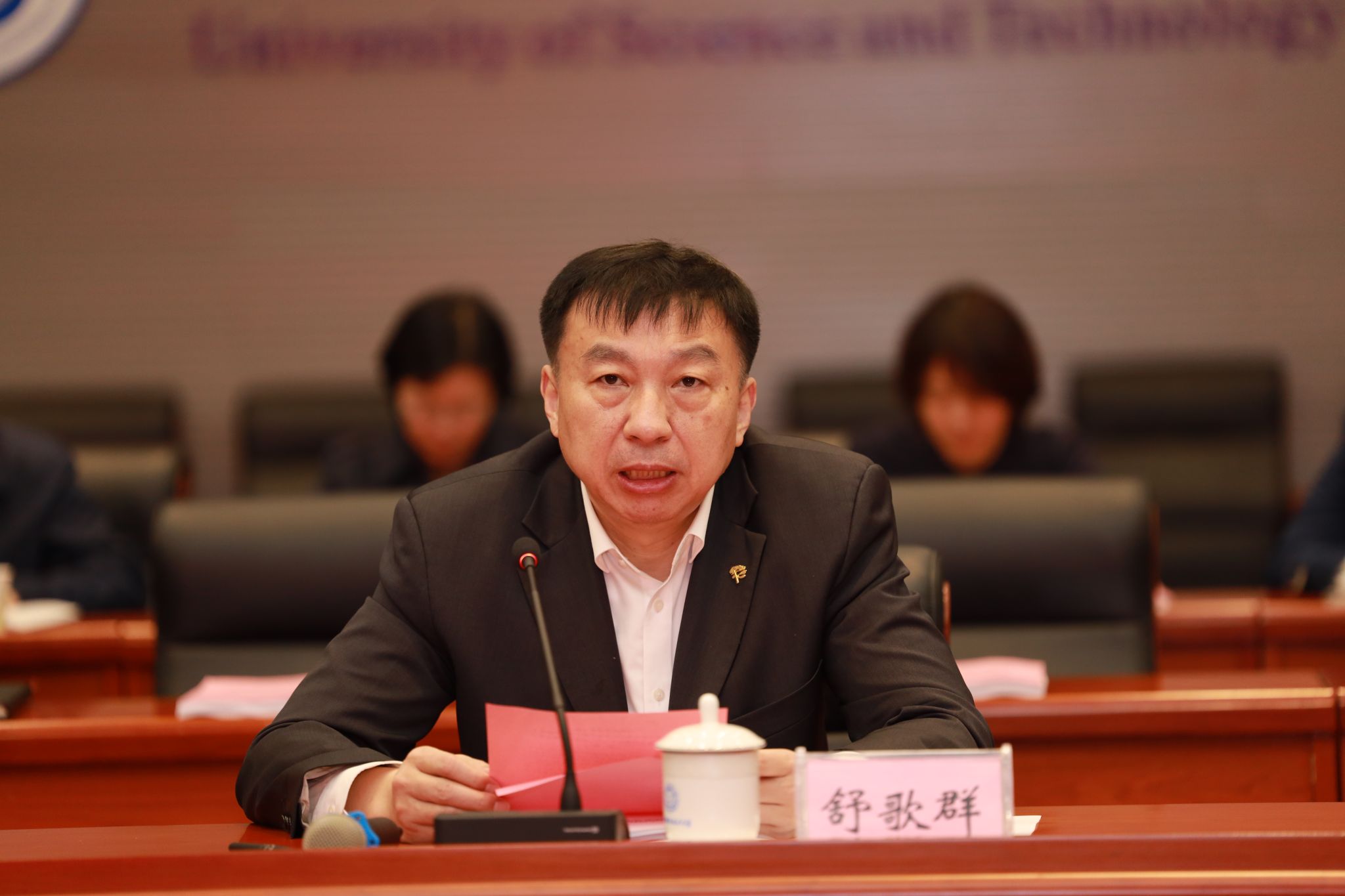4月13日上午,校党委理论学习中心组在物质科研楼三楼报告厅,召开学习贯彻习近平新时代中国特色社会主义思想主题教育第一次集中学习会。校党委书记舒歌群主持会议。在校校领导,校党委委员、纪委委员,机关党群部门主要负责人参加会议。