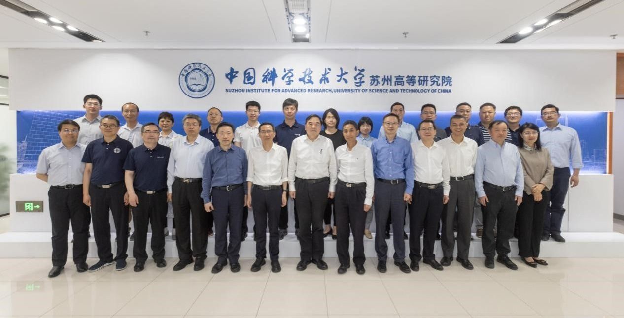 根据校党委主题教育工作部署和扎实开展调查研究的工作安排,5月16日,校长包信和院士带队到苏州高等研究院调研并指导工作。副校长杨金龙院士,江雷院士、俞书宏院士,苏州独墅湖科教创新区党工委书记许文清,中科院苏州医工所所长唐玉国,中科院苏州纳米所副所长王强斌,中国科大党委常委、苏州高研院党委书记、执行院长褚家如出席调研会,中国科大生命科学与医学部、化学与材料科学学院、计算机科学与技术学院以及校党政办公室、党委教师工作部、发展规划处、研究生院、科研部等单位负责人,苏州高研院班子成员和教师代表等参加调研座谈会。