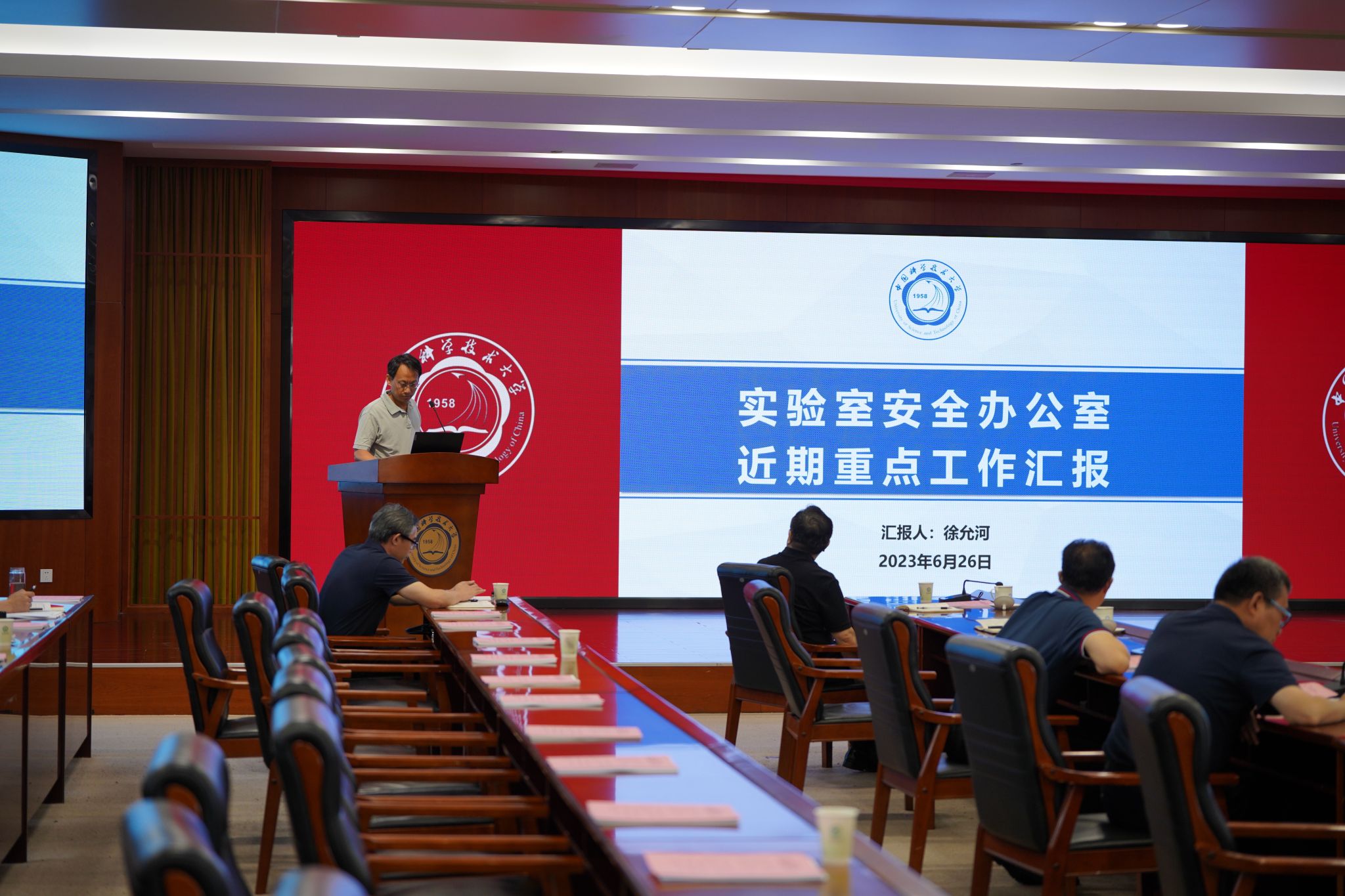 会上,舒歌群领学习近平总书记关于防范化解风险重要论述,传达学习中共中央办公厅有关文件精神。校党委宣传部常务副部长朱霁平汇报了学校“三重”排查情况及近期意识形态工作情况、教育部师生思想政治状况滚动调查情况;校实验室安全办公室常务副主任徐允河汇报了学校实验室安全工作情况。