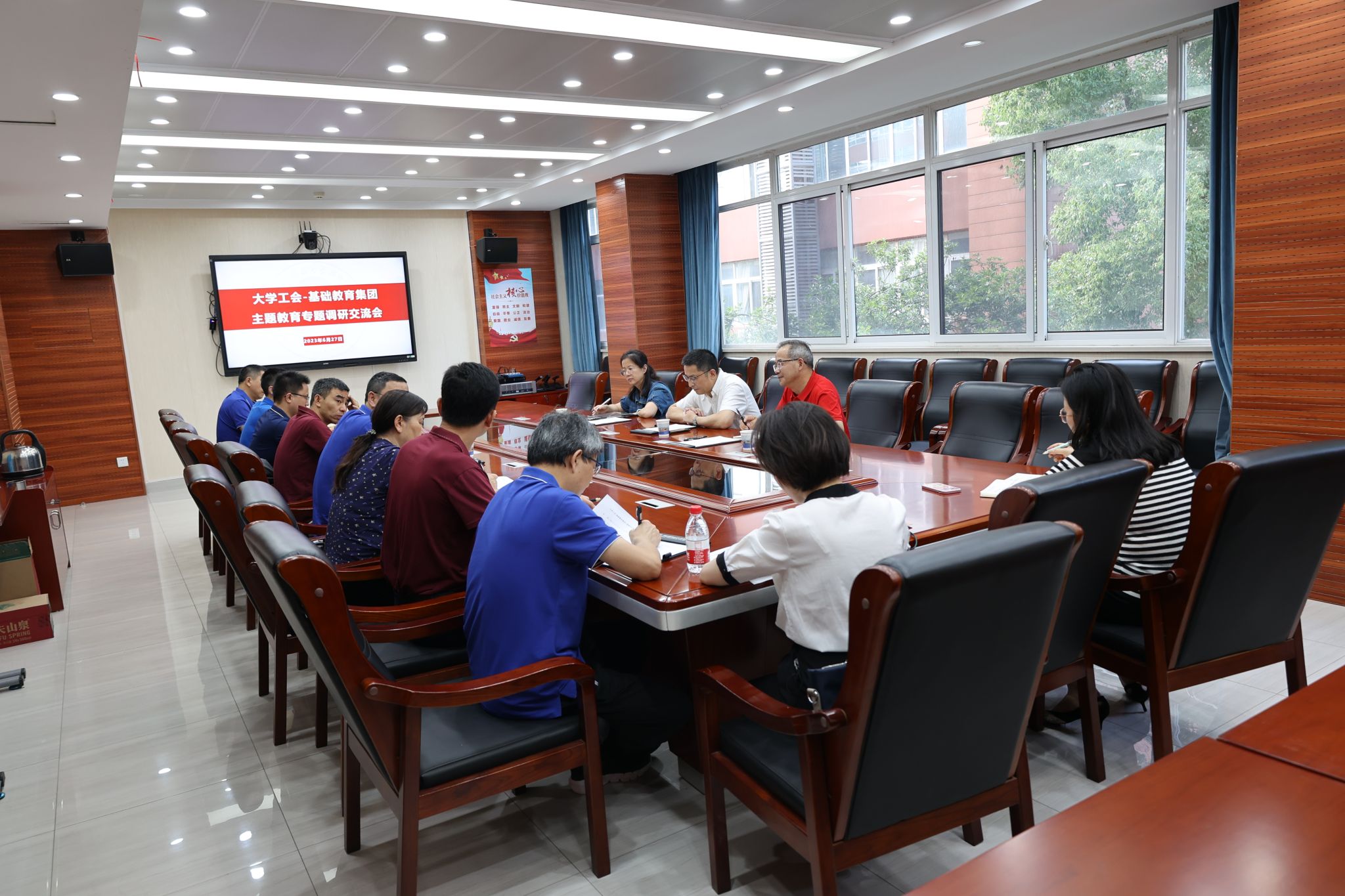 会议最后,周丛照作总结讲话。周丛照对校工会及基础教育集团工会已开展的活动表示充分肯定,同时希望双方依托中国科大丰富的科教资源,深挖教职工切实需求,充分发挥工会工作优势,将各项惠及教职工的具体工作落到实处,把惠民生、暖民心、顺民意的工作做到教职工心坎上。周丛照强调,工会工作要充分整合优质资源,打造有影响力、递进式的项目品牌,形成特色,做好传承;要拓宽工作思路,学习借鉴发达地区名校的先进理念,不断创新工作机制,提高工作成效,切实为中国特色、科大风格的一流大学建设提供支撑保障;要充分挖掘大学科研实习基地资源,开展有针对性的主题活动,探索出一条可持续发展的运行机制。