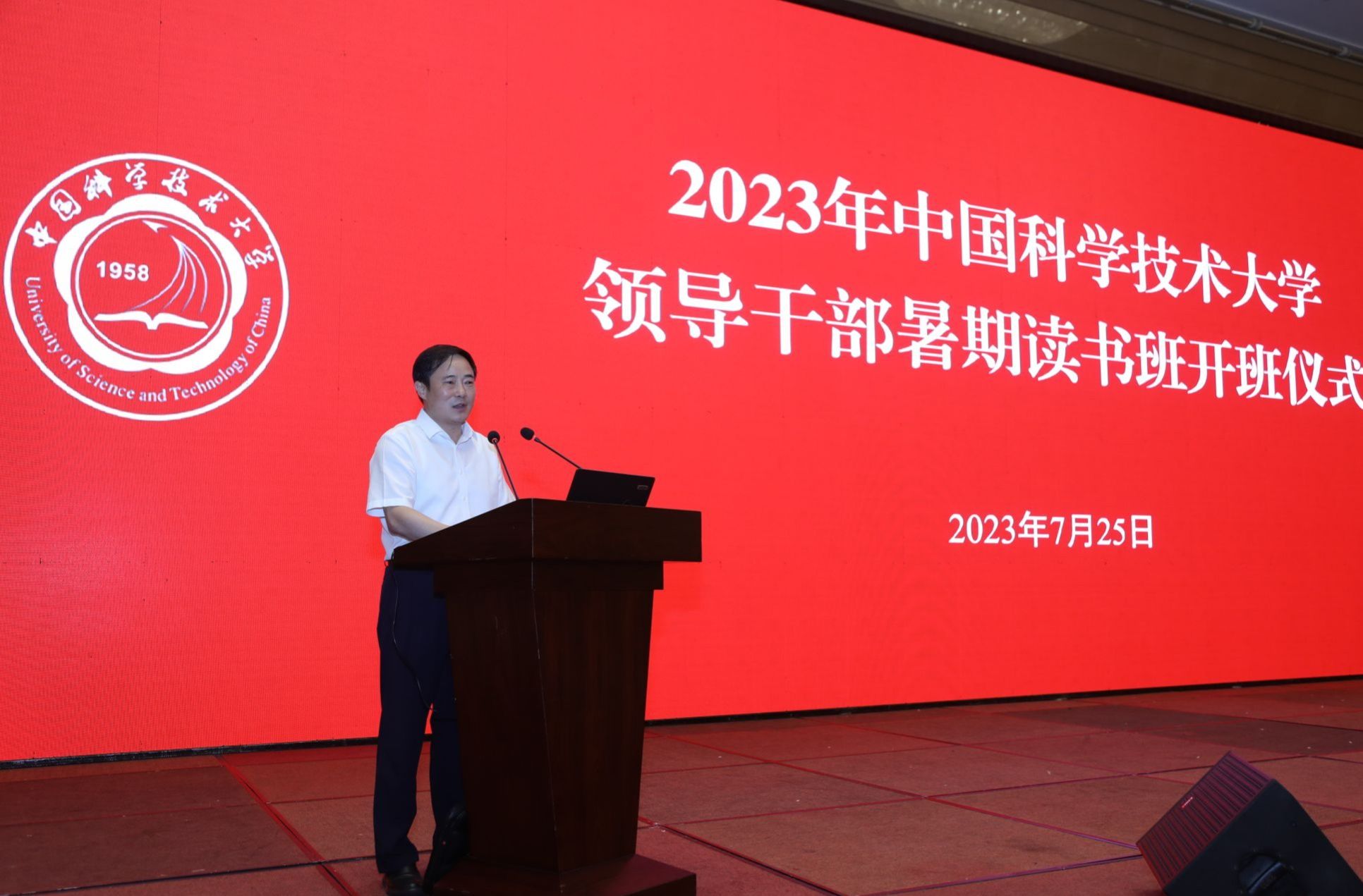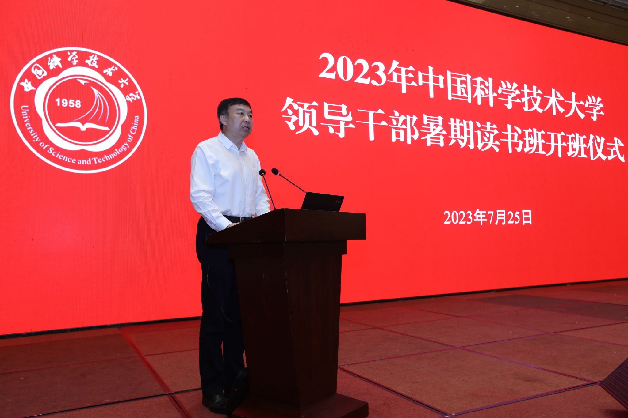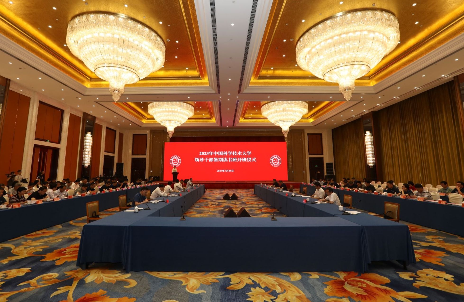 7月25日上午,中国科大领导干部暑期读书班开班仪式在宿州市举行。校党委书记舒歌群主持开班仪式并作动员讲话。宿州市委副书记任东出席开班仪式并致辞。校领导蒋一、王晓平、杨金龙、毕金初、傅尧、周丛照、褚家如、薛天,宿州市委常委、组织部部长、统战部部长刘天卓出席开班仪式。