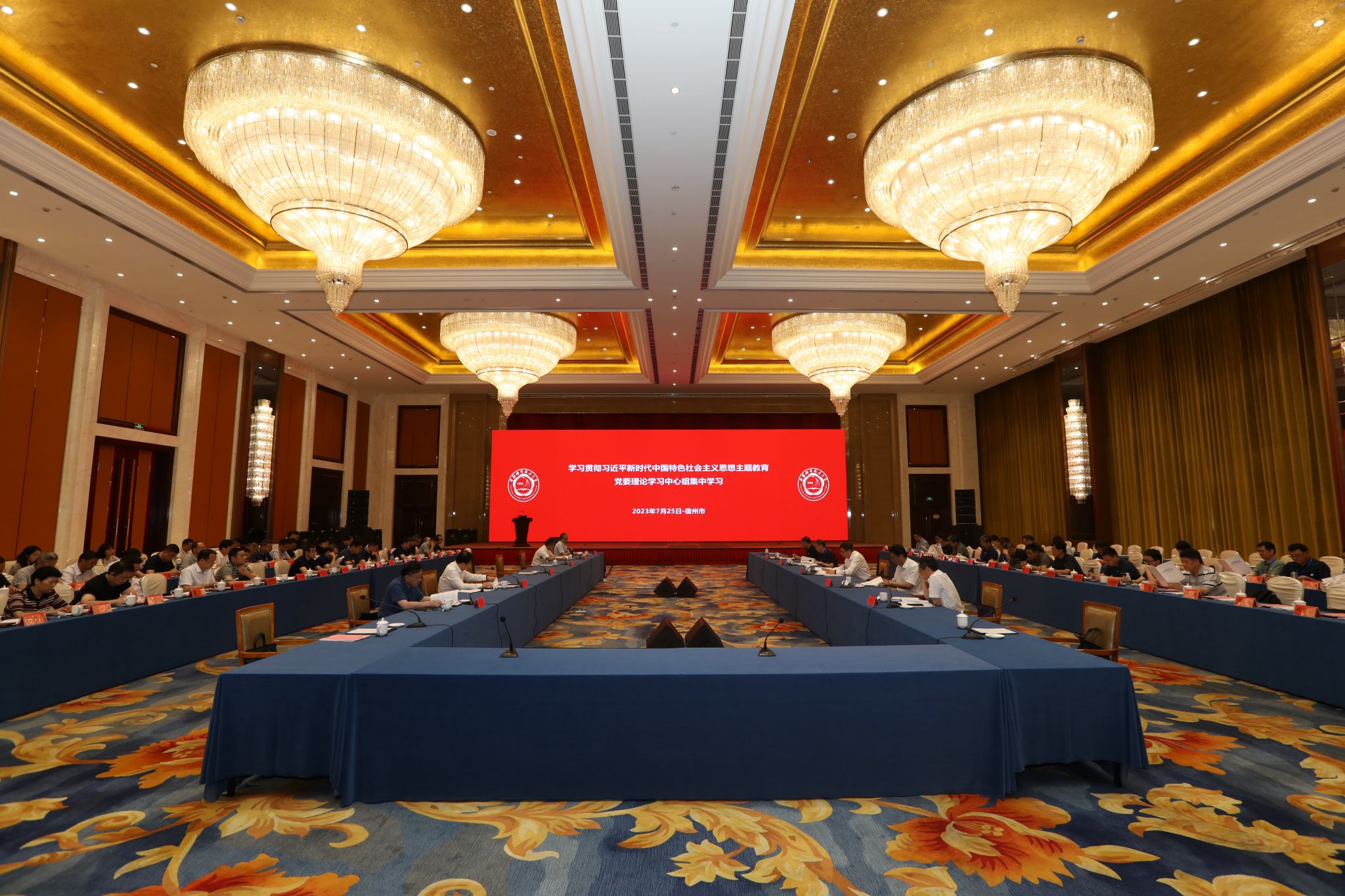 暑期读书班安排了校党委理论学习中心组集中学习会,省委教育工委书记钱桂仑受邀作专题党课报告,学校分别与宿州市、淮北市、淮南市举行市校合作座谈会。此外,学员还赴宿州城市规划馆、安徽佳力奇先进复合材料科技股份公司、安徽东方果园生物科技有限公司、华瑞赛维5G实验室开展现场教学等。