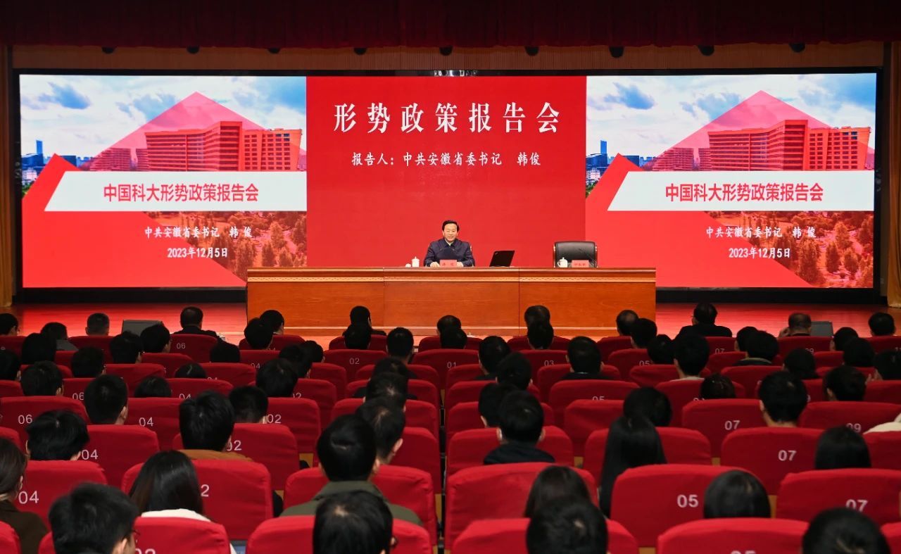 12月5日上午,省委书记韩俊专程赴乐鱼官网首页入口作形势政策报告。他强调,要深入学习贯彻习近平总书记重要讲话重要指示精神,潜心立德树人,勇攀科技高峰,争做中国式现代化的先锋力量,书写新时代省校合作崭新篇章。省委常委、秘书长、政法委书记张韵声,副省长任清华,中国科大校长包信和出席。中国科大党委书记舒歌群主持报告会。中国科大500余名师生代表参加报告会。