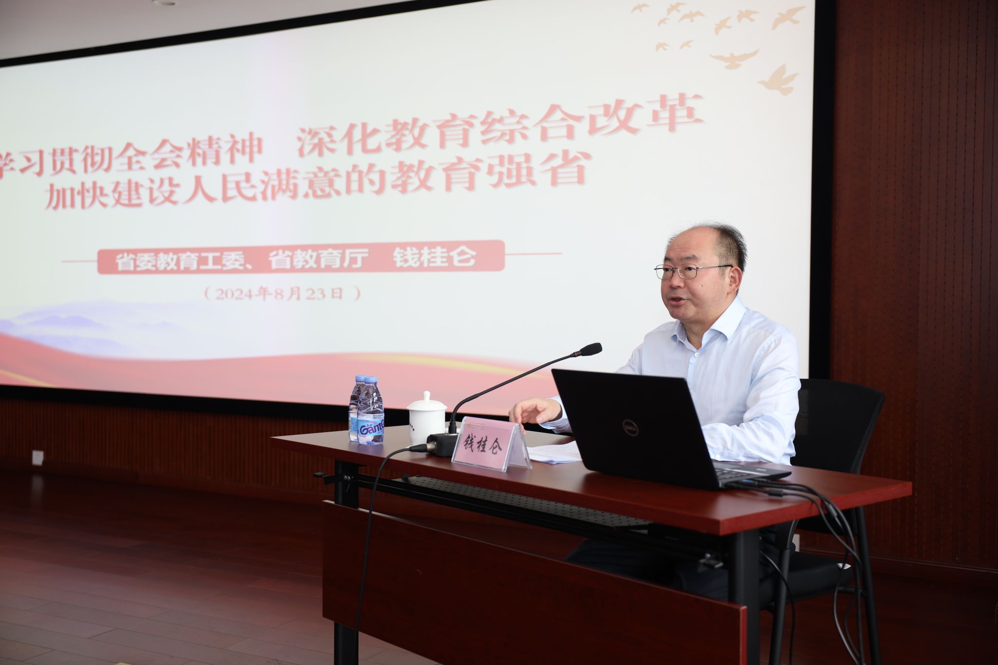 钱桂仑在党课报告中指出,党的二十届三中全会对深化教育综合改革作出战略部署,充分体现了以习近平同志为核心的党中央对教育的高度重视和对以教育强国建设有力支撑中华民族伟大复兴的殷切期待。要始终坚持对标对表,深入学习贯彻习近平总书记关于教育改革的重要论述和全会新部署新要求,深刻认识教育改革的历史进程、取得成绩和面临形势,聚焦“谱写中国式现代化安徽篇章,教育何为”时代命题,以改革创新为动力,加快建设人民满意的教育强省。