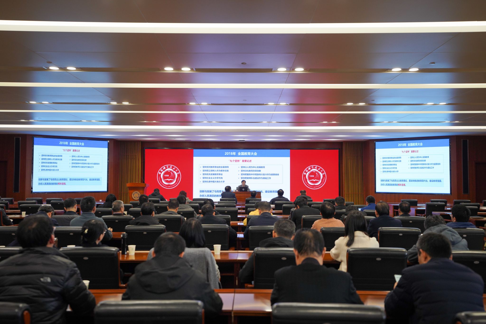 舒歌群指出,李家俊书记的报告高屋建瓴、思想深邃、内容丰富,对我们深入学习领会、全面贯彻落实好全国教育大会精神和《纲要》具有很强的指导性和针对性。“科教报国、追求卓越”是中国科大一以贯之的初心和使命。11月21日,中国科学院院长、党组书记侯建国来校调研时,对学校发展提出殷切希望,希望中国科大在改革创新发展中牢牢把握、始终坚持“守正创新”这一重大原则,确保学校沿着正确的方向行稳致远,积极推进人才培养、科研组织等各项事业改革,为学校发展增添新的动力和活力。