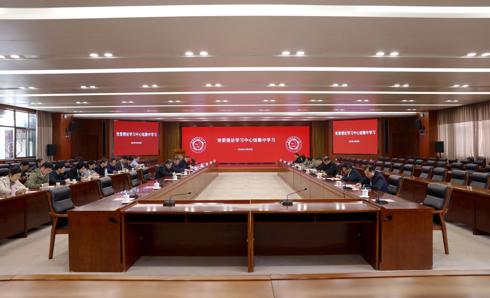 10月28日下午,校党委理论学习中心组在东活五楼报告厅召开集中学习会,专题研究推进党纪学习教育常态化长效化工作。校长、党委副书记常进主持会议,在校校领导,党委委员、纪委委员,机关党群部门主要负责人参加会议。