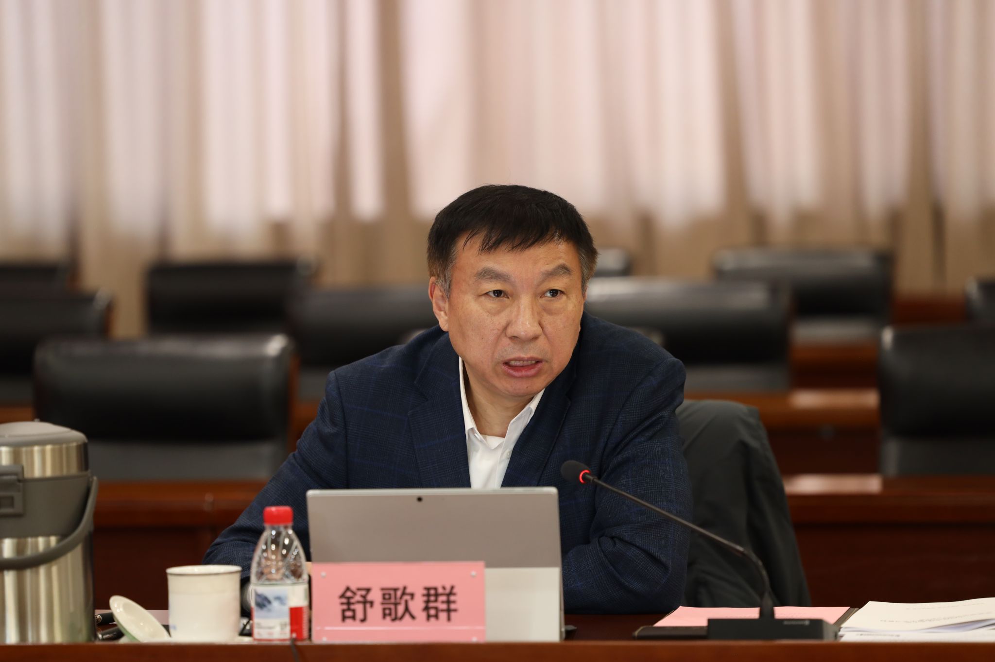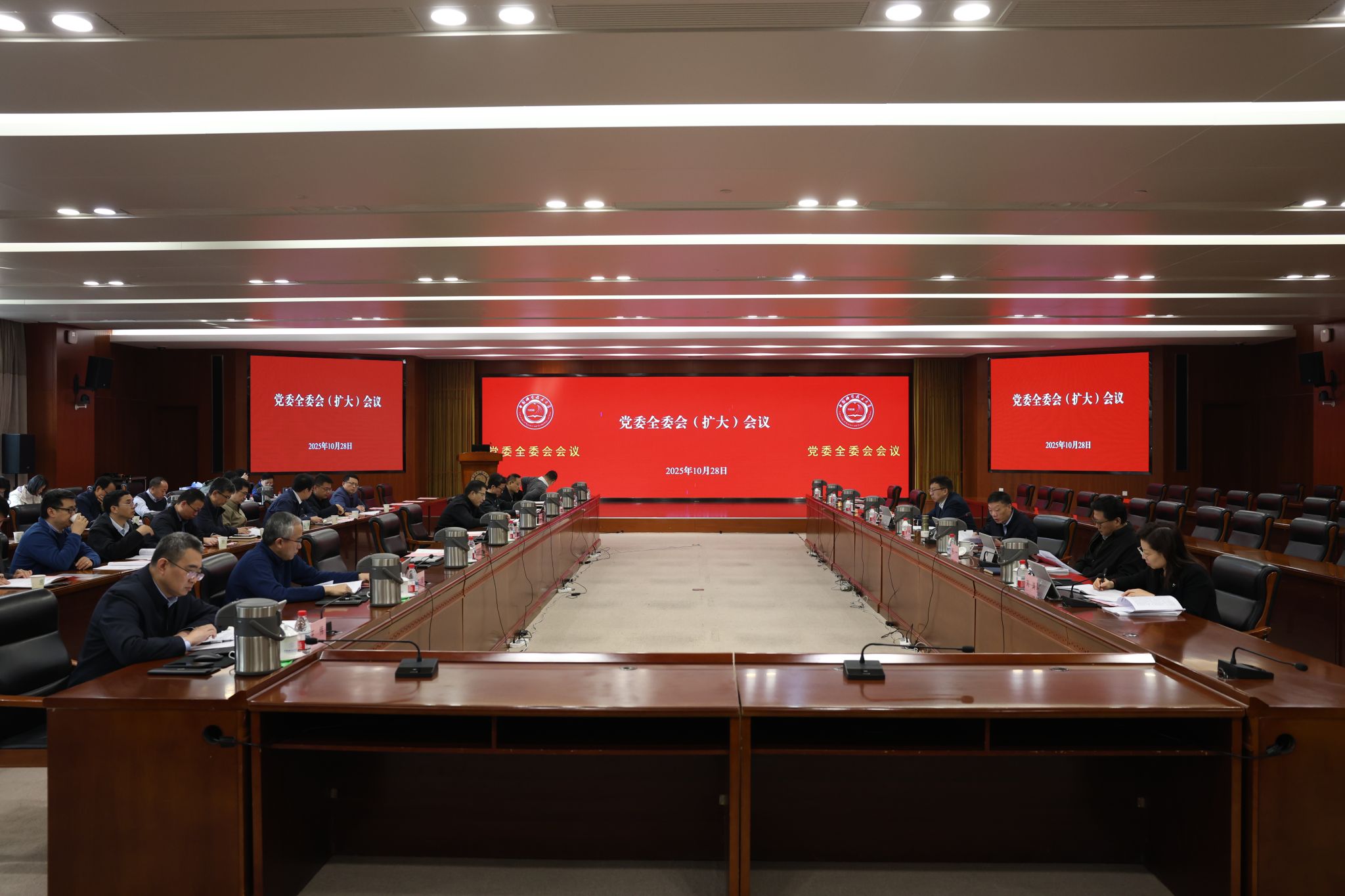 10月28日上午,中国科大在东活五楼报告厅召开党委全委会(扩大)会议,集中传达学习党的二十届四中全会精神。校党委书记舒歌群主持会议,校长常进等在校校领导,党委委员,院级党组织书记,党委工作部门主要负责人参加会议。