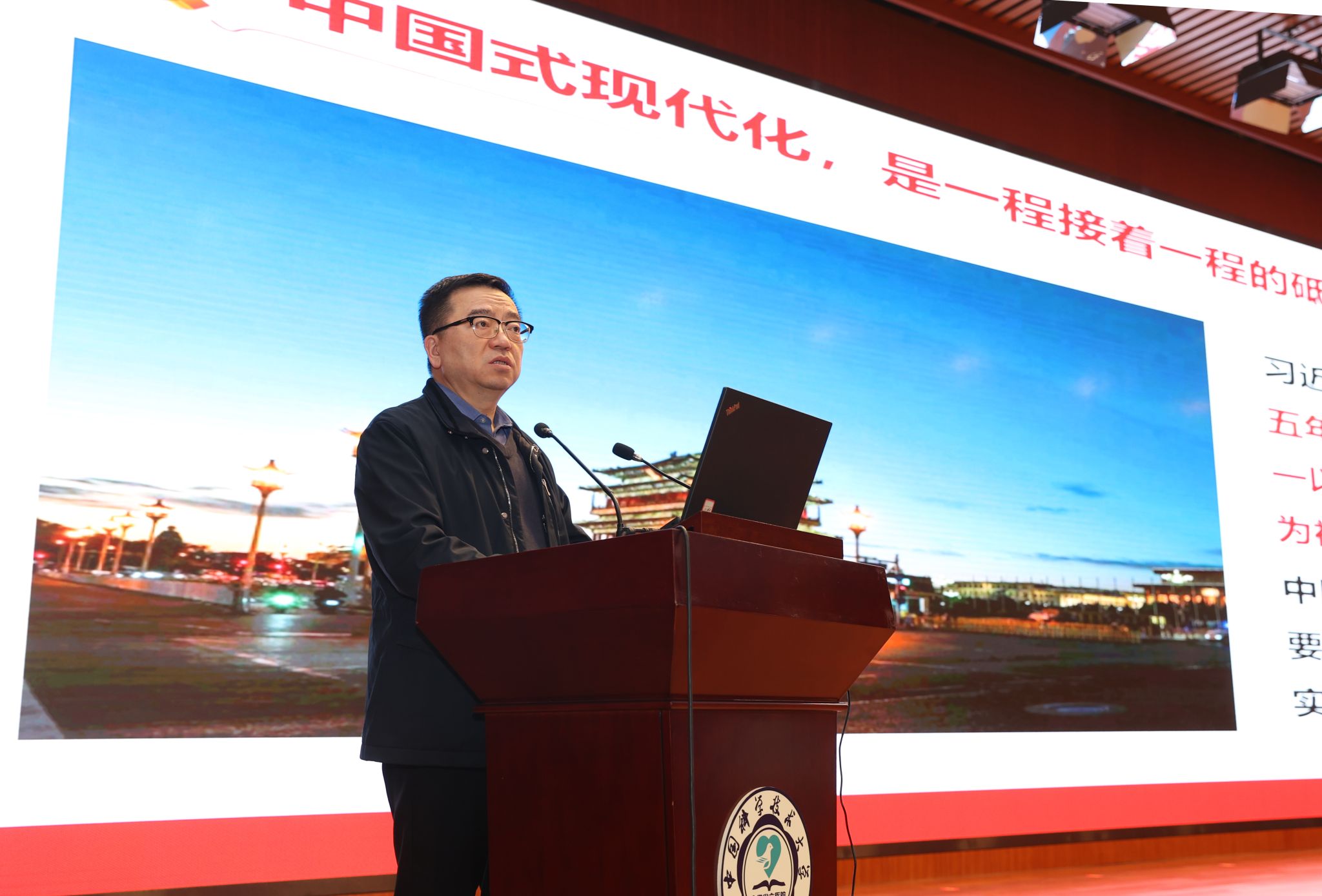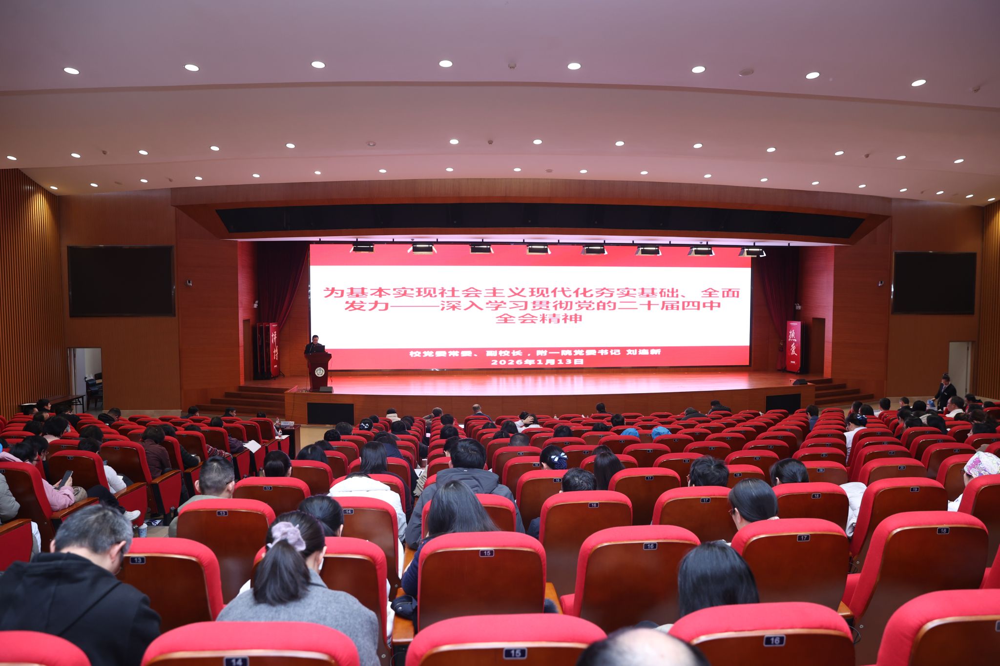 为深入学习宣传贯彻党的二十届四中全会精神,1月13日下午,校党委常委、副校长,附一院党委书记刘连新在附一院南区学术报告厅作题为《为基本实现社会主义现代化夯实基础、全面发力——深入学习贯彻党的二十届四中全会精神》的宣讲报告,会议由附一院党委副书记姜明主持,院领导班子成员、管理干部、科主任、支部书记和护士长参加会议。