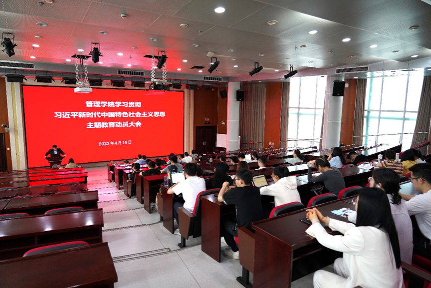院党委副书记曾皓宣读了管理学院党支部开展学习贯彻习近平新时代中国特色社会主义思想主题教育任务清单,要求全院党支部把理论学习、调查研究、推动发展、检视整改等贯通起来,有机融合、一体推进,把高质量开展好主题教育作为当前的首要政治任务,推动全院党员干部和师生在主题教育中感悟思想伟力、凝聚奋进力量。
