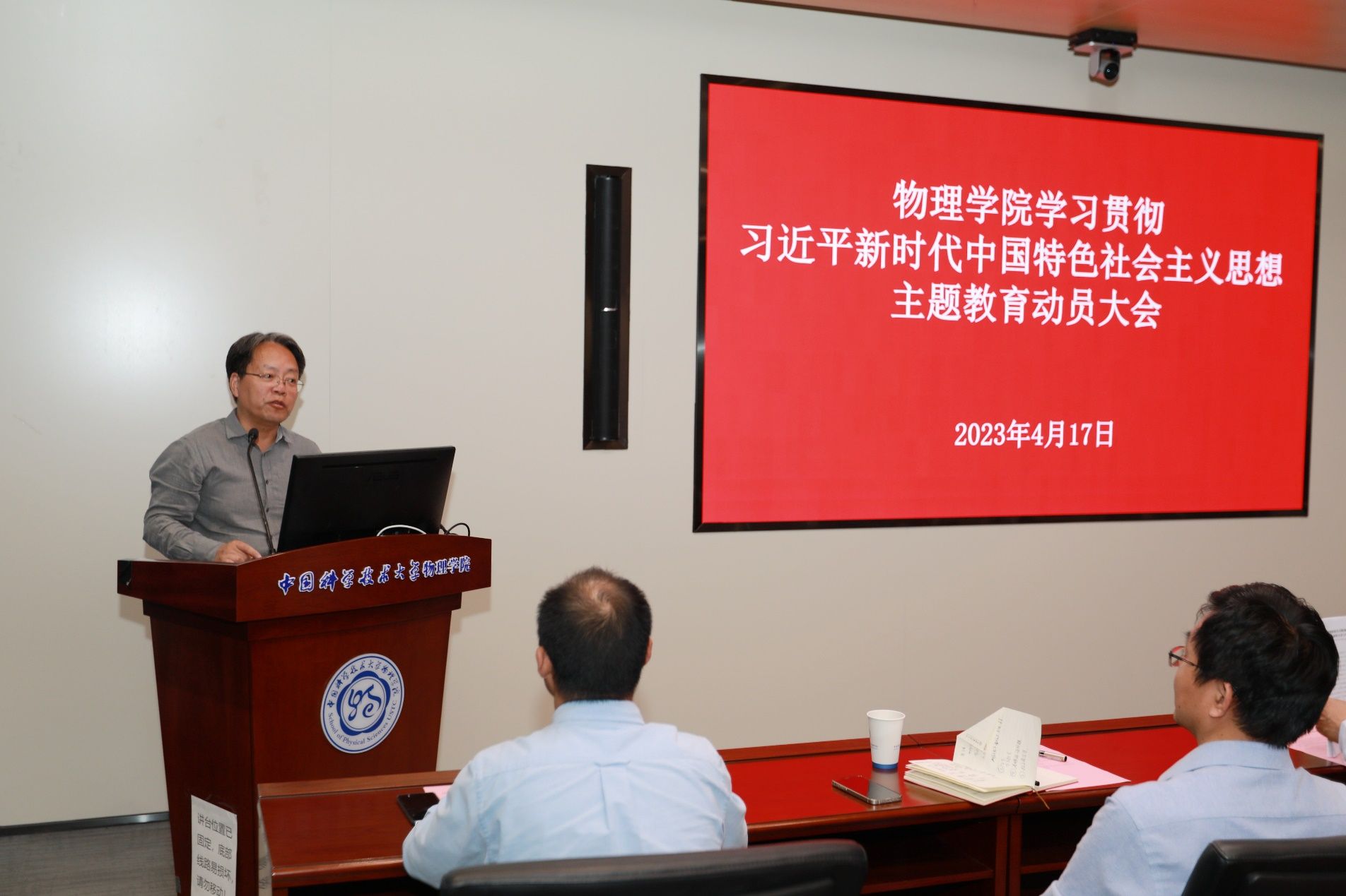 陈向军表示,物理学院正处在建设世界一流物理学院的关键时期,开展主题教育,用习近平新时代中国特色社会主义思想和党的二十大精神武装头脑、指导实践、推动工作,对推进学院各项事业的发展具有十分重大的意义。学院将发挥综合优势,力争把物理学院建成学术研究一流、人才培养一流、理工结合、在国际上具有影响力的物理学人才培养和学术研究中心。