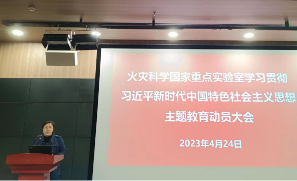 4月24日上午,火灾科学国家重点实验室在特种楼二楼报告厅,召开学习贯彻习近平新时代中国特色社会主义思想主题教育动员大会。实验室党委书记张和平主持会议,并作动员讲话。学校主题教育第三指导组成员、校党委巡视工作办公室副主任汤茜出席会议并作指导讲话。