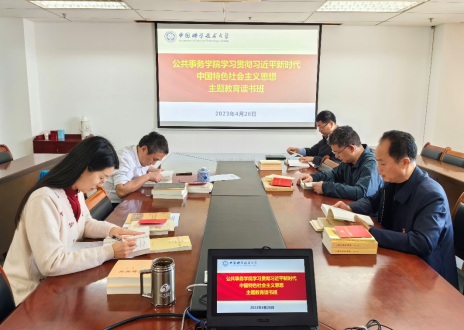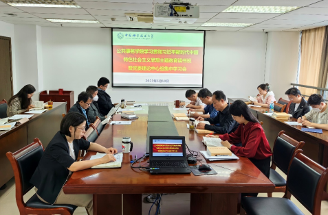 5月10日下午,公共事务学院在管理科研楼1108会议室举办学习贯彻习近平新时代中国特色社会主义思想主题教育读书班暨党委理论学习中心组集中学习会。学院党政领导班子成员、党员委员、各党支部书记参加,会议由学院党委书记丁望斌主持。
