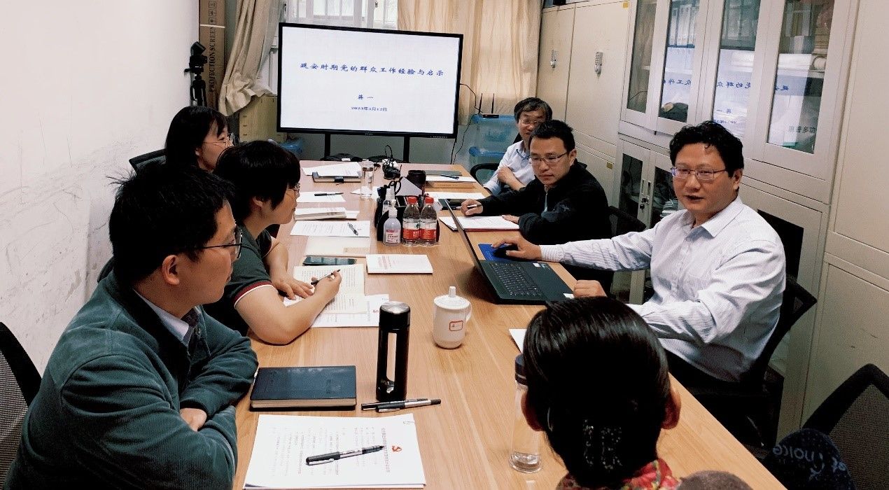 5月12日下午,在218楼112会议室,校党委常务副书记、党委组织部部长蒋一以《延安时期党的群众工作经验与启示》为题,作学习贯彻习近平新时代中国特色社会主义思想主题教育专题党课报告。组织部统战部党支部全体党员聆听了党课,由组织部统战部党支部书记申成龙同志主持报告会。
