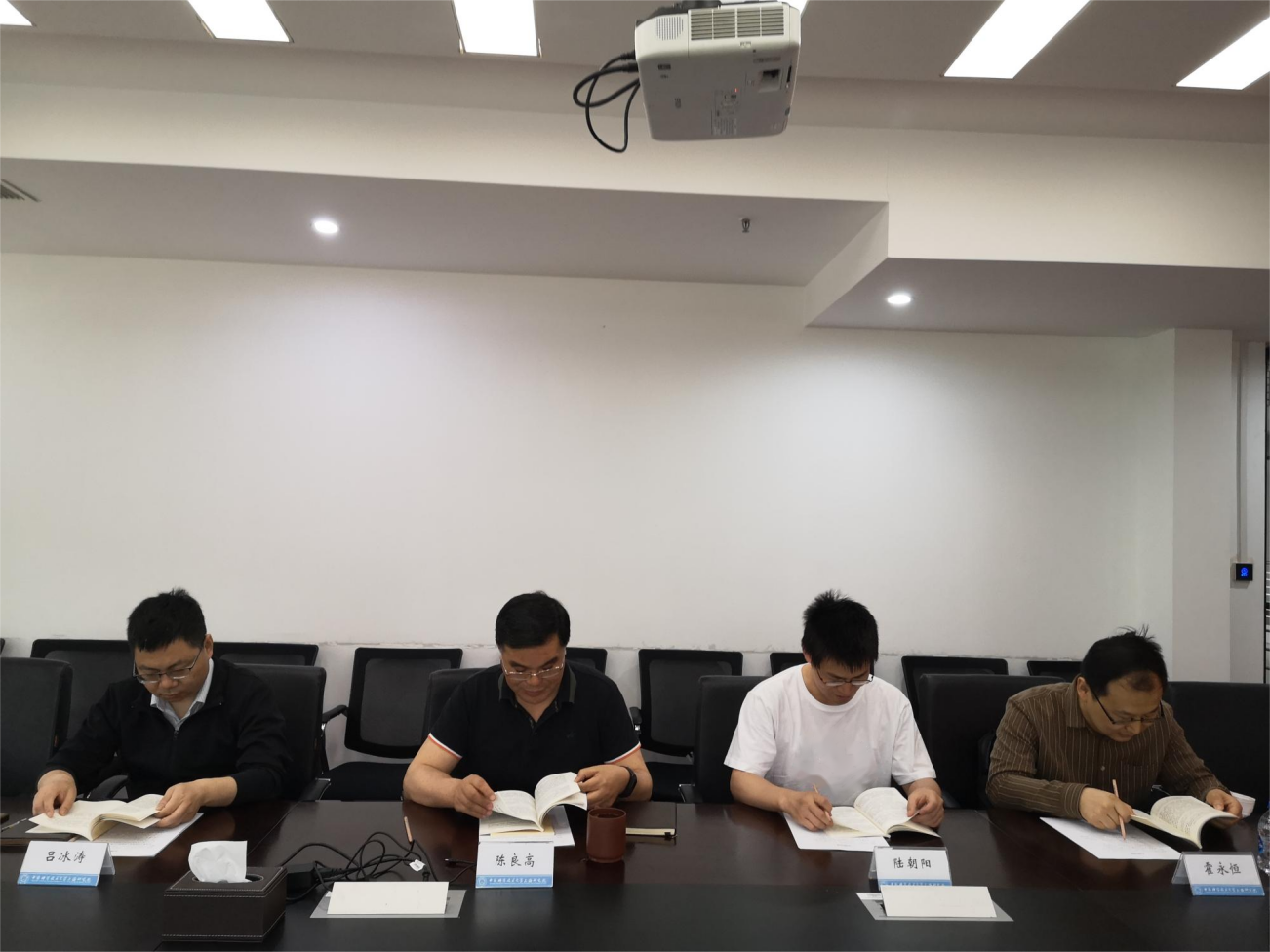 考察结束后,在研究院2号楼214会议室,召开了主题教育专题学习暨调研座谈会,院领导班子成员,各支部书记,党政办相关人员出席会议,会议由陈良高主持。