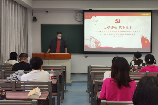 4月23日,2020级公管法学研究生党支部在管理科研楼1108会议室开展“感悟思想伟力 凝聚奋进力量”主题党日活动。活动以学习贯彻习近平新时代中国特色社会主义思想主题教育工作会议精神为主线,党支部书记胡蝶同志领学《习近平新时代中国特色社会主义思想专题摘编》中的章节《坚持全面依法治国》,她将理论学习与自身专业背景相结合,号召党员坚持法安天下、德润人心。支部成员谭雅茜同志表示,学生党员要从习近平新时代中国特色社会主义思想中汲取不懈奋斗的智慧和动力,将自身发展融入到国家发展和现代社会建设中去。