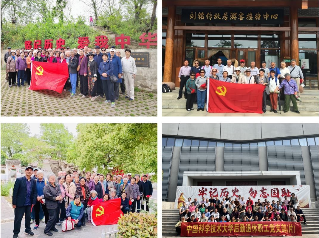 重温历史记忆,厚植爱国情怀。物理学院、管理学院及机关南区退休干部党支部先后赴肥东桥头集参观爱国主义教育基地小葛碉堡,探寻红色印记,追忆峥嵘岁月。数学学院退休干部党支部赴肥西县参观了淮军将领刘铭传故居,感受爱国将领保卫台湾、反抗外国侵略者、为祖国统一大业做出的卓越历史贡献。后勤集团退休干部党支部前往淮南参观万人坑爱国主义教育示范基地,附中退休干部党支部赴柘皋镇参观巢北抗战纪念馆,激励党员同志铭记历史、珍爱和平,勿忘国耻、振兴中华。