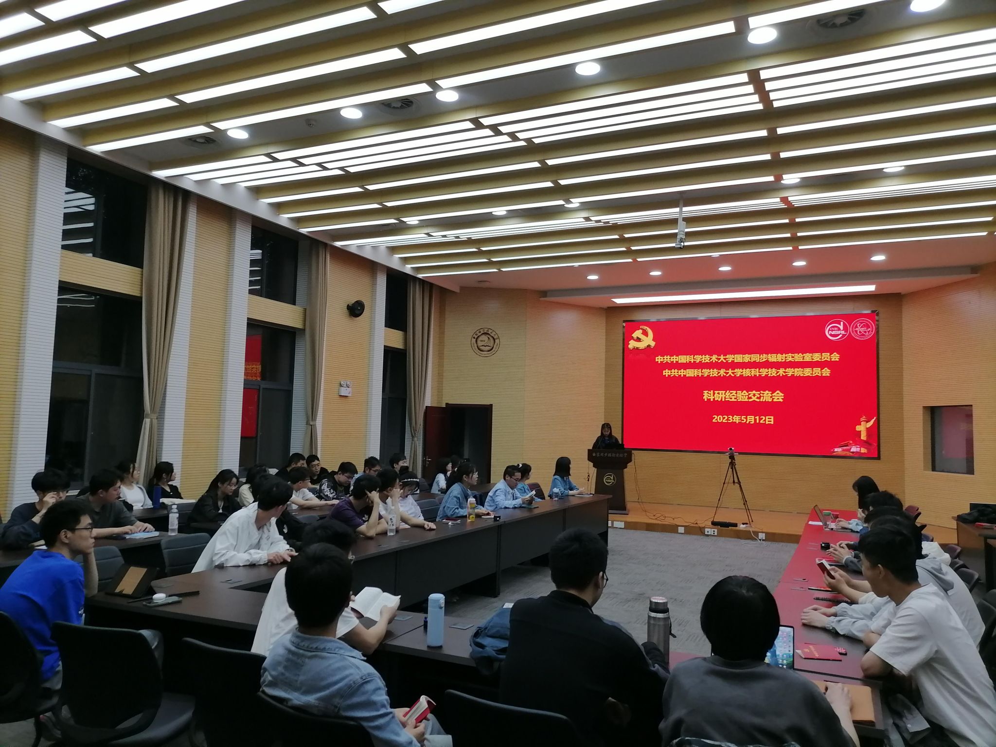 为推动学习贯彻习近平新时代中国特色社会主义思想主题教育走深走实,加强党支部科研育人和科研文化建设,充分发挥朋辈引领作用,营造浓厚的学术科研氛围,5月12日,国家同步辐射实验室2018级研究生班党支部、核科学技术学院2018级研究生班党支部、国家同步辐射实验室2022级研究生第一党支部、国家同步辐射实验室2022级研究生第二党支部、核科学技术学院2022级研究生党支部等5个党支部联合举行科研经验交流会暨调研会主题党日活动。近90位同学现场参加会议,50位同学在腾讯会议上参会。会议由实验室2022级研究生第二党支部书记郭辰飞主持,国家同步辐射实验室党委(核科学技术学院党委)副书记周婷应邀出席。