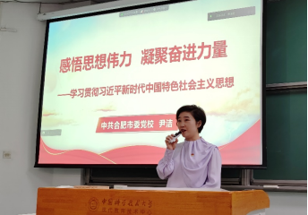 5月17日下午,国家同步辐射实验室党委(核科学技术学院党委)在西区第三教学楼3B102教室开展学习贯彻习近平新时代中国特色社会主义思想主题教育专题党课,邀请中共合肥市委党校尹洁副教授担任主讲并作《感悟思想伟力,凝聚奋进力量》主题报告。会议在国家同步辐射实验室二号楼一楼学术报告厅设立了分会场,并进行线上直播。6个教工党支部和12个学生党支部的350余名师生党员参与学习,活动由党委宣传委员王占东主持。