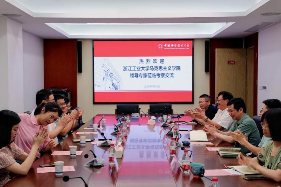 顾容对我院的热情接待和真诚交流表示感谢,并分享了浙江工业大学马克思主义学院的学科和科研团队建设、思政课教学模式改革、科研成果评价、青年教师培养、研究生培养等方面的做法及经验。他指出,中国科大马克思主义学院近些年发展成效显著,为理工科院校建设马院提供了好思路,浙江工大马院作为地方工科院校中首批省重点建设马院,双方许多工作值得互相学习借鉴,期待今后加强往来、密切交流,共同实现高质量发展。