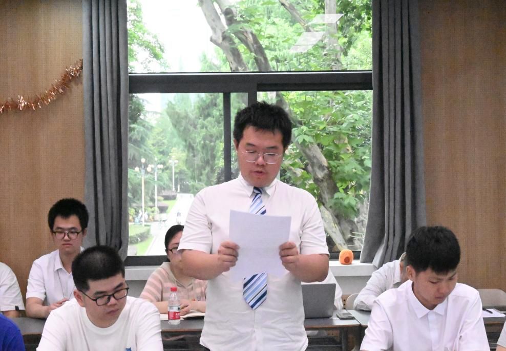 新发展党员代表沈俊杰、贾龙鑫依次发言,表示将坚守理想信仰、牢记党员意识、不懈努力奋斗。毕业生党员代表陈宝骥、刘雨辰结合自身的党组织生活、大学期间的学习科研经历,围绕关心组织集体、加强理论学习、练就过硬本领,深刻阐述了自己作为学生党员的责任与使命。
