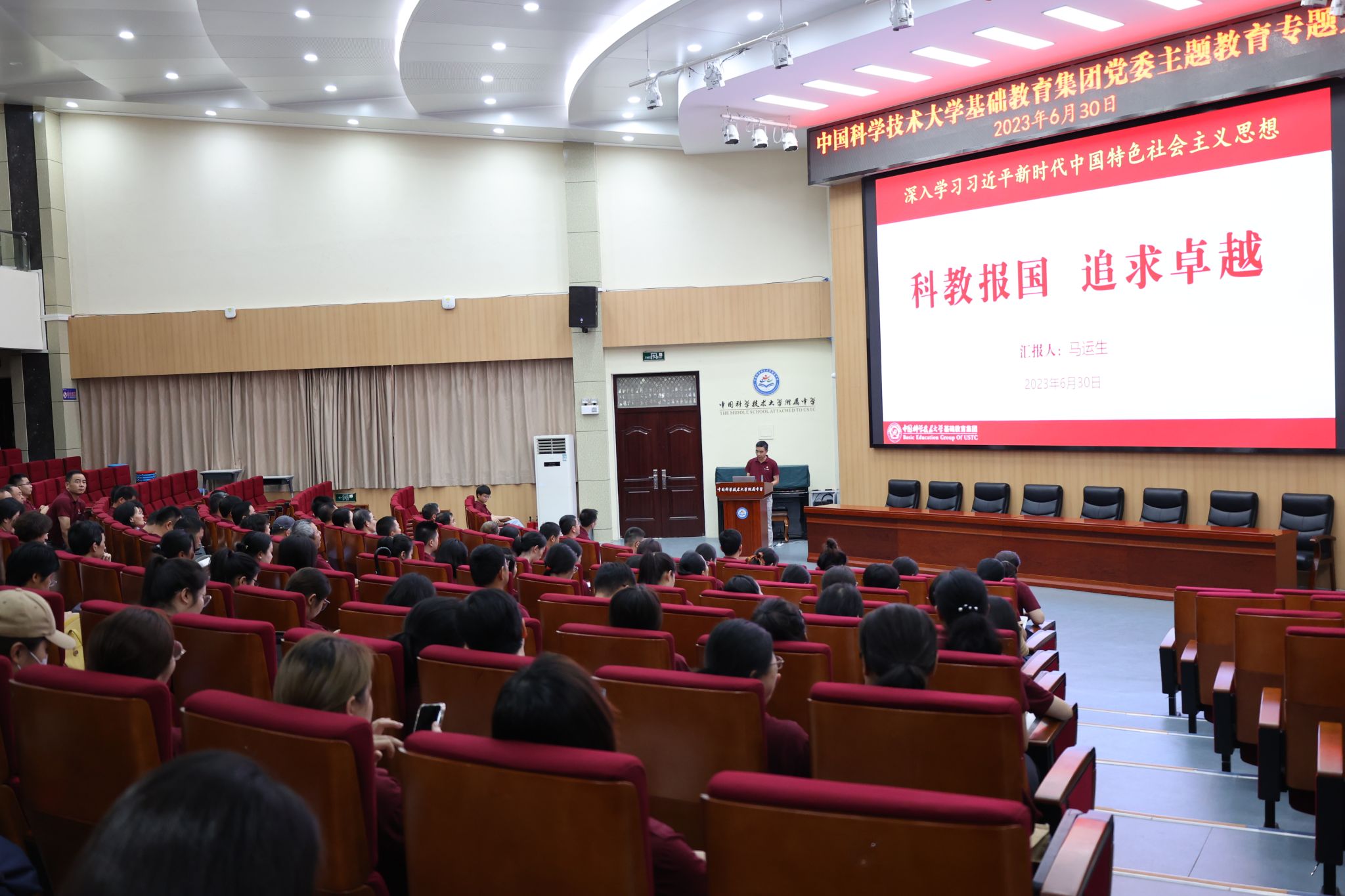为深入开展学习贯彻习近平新时代中国特色社会主义思想主题教育,贯彻落实党的二十大精神,同时庆祝中国共产党成立102周年,6月30日,乐鱼官网首页入口基础教育集团党委书记、主任马运生在科大附中报告厅开展主题教育专题党课活动。集团和所属单位领导班子成员以及集团党委全体党员、入党积极分子共计100余人参加了党课学习。专题党课由集团副主任、科大附中党总支书记、校长汤胜主持。