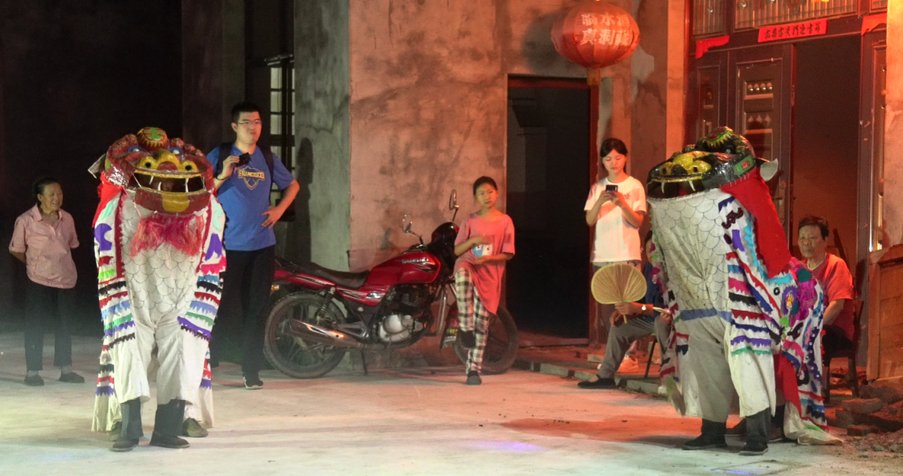 村民的舞狮表演和声声锣鼓吸引了附近村民来观看