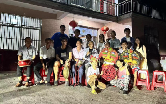 驻村工作队、民俗文化研究课题组与舞狮队合影