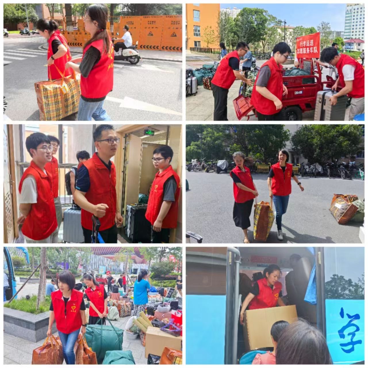 上午9点,党员志愿者统一着装红马甲来到中区3号楼、5号楼,帮助本科生将打包好的行李搬运下楼,搬到运输车辆上,再搬进东区320、322号楼学生公寓房间。炎热的天气并没有减弱志愿者们的热情,志愿者们分工合作、齐心协力,搬运一件又一件的行李,彰显了党员的先锋模范性,为此次宿舍搬迁工作圆满完成奠定了坚实基础。