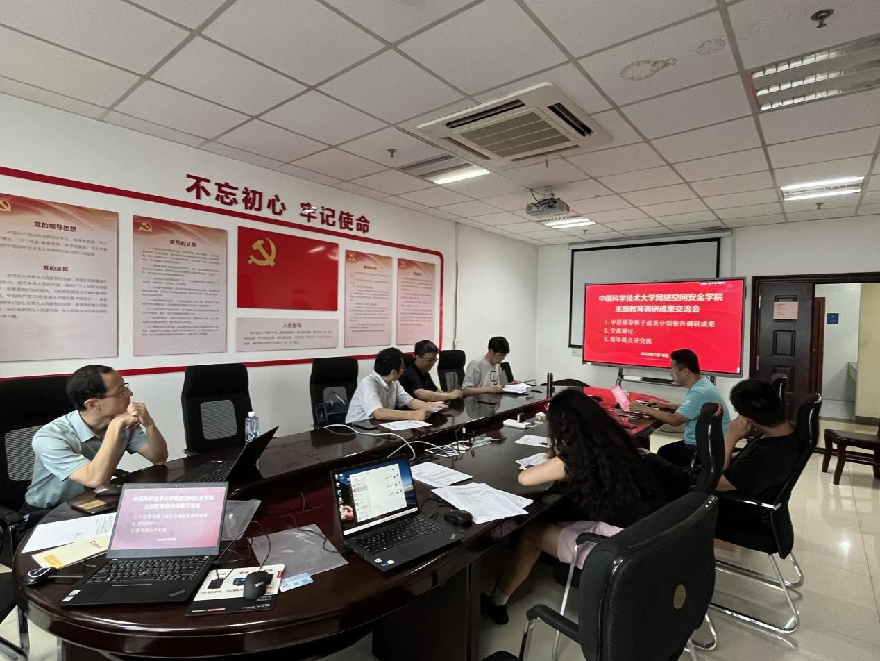 7月18日下午,网络空间安全学院召开学习贯彻习近平新时代中国特色社会主义思想主题教育调研成果交流会。会议由学院党总支书记谭勇主持,学校主题教育领导小组第四指导组成员陈卫东到会指导并作交流,领导班子成员、党总支委员出席会议。