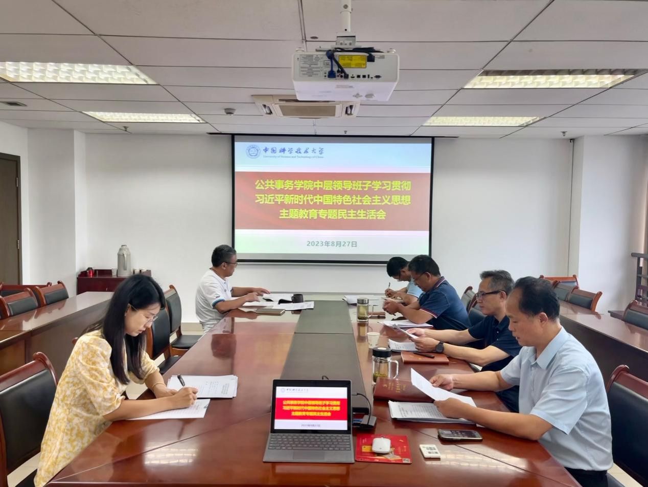 8月27日下午,公共事务学院在管理科研楼1108会议室召开学习贯彻习近平新时代中国特色社会主义思想主题教育专题民主生活会,校主题教育指导组成员朱霁平到会指导,公共事务学院领导班子成员参加会议。会议由学院党委书记丁望斌主持。