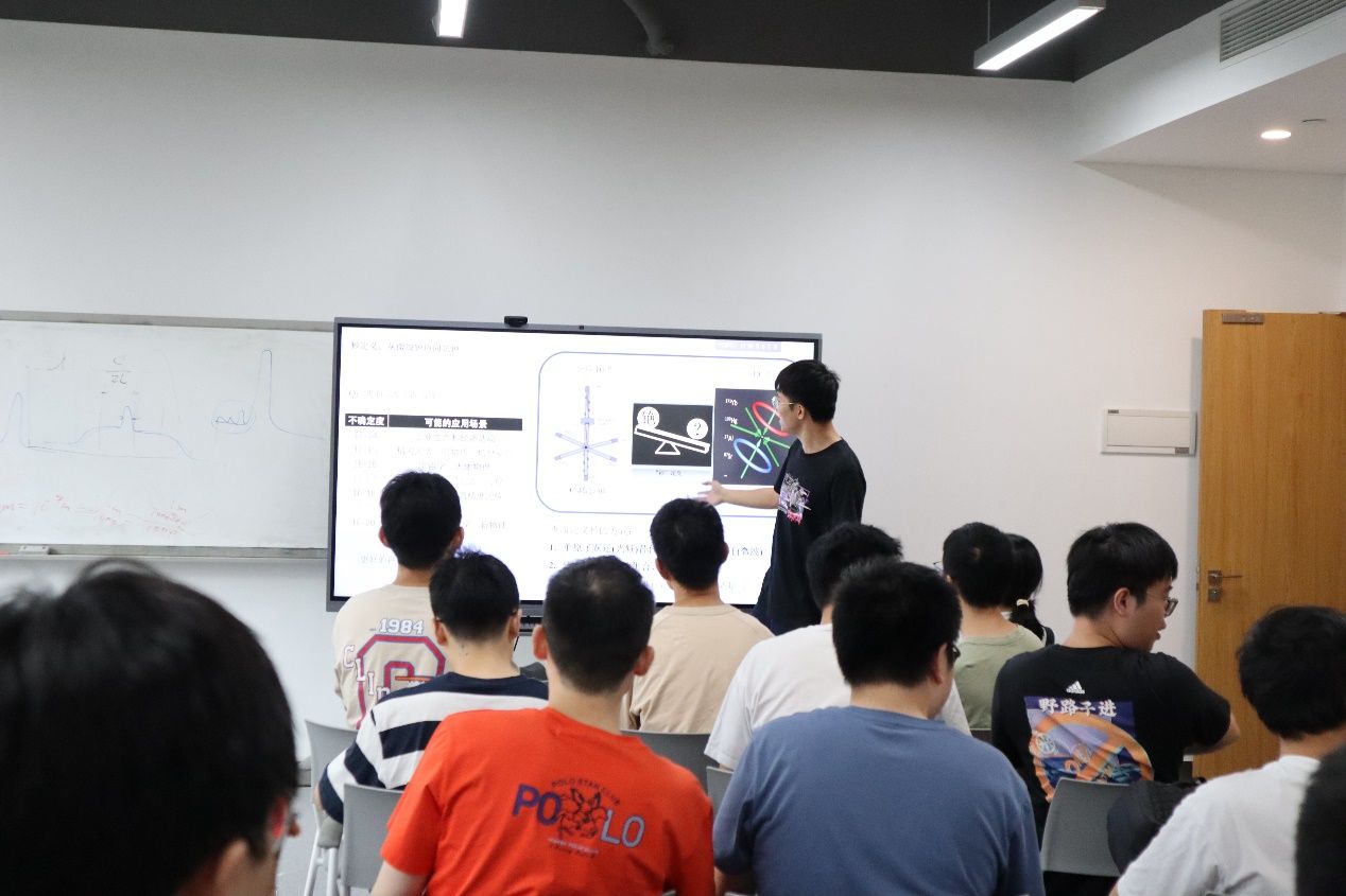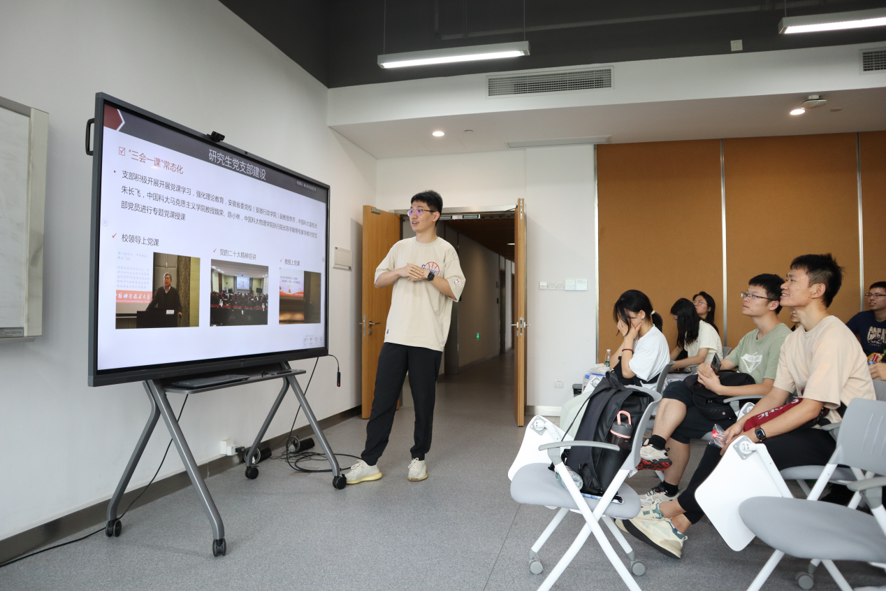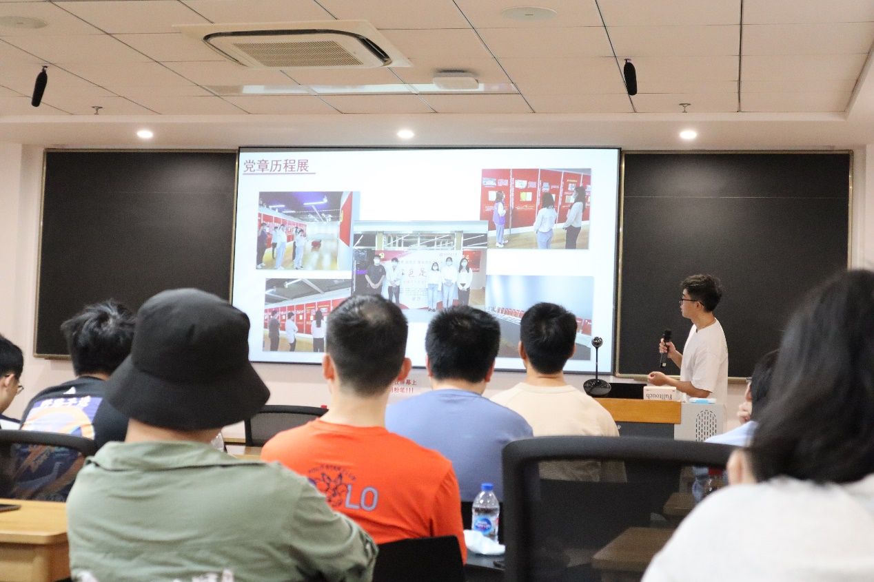 第一阶段活动在上海交通大学物理与天文学院506会议室举行,由上海交通大学物理与天文学院光学所第一学生党支部书记单洪瑞主持。单洪瑞首先对中科大和华师大同学的来访表示欢迎,并对所在的光学所第一学生党支部做了基本介绍和特色活动展示,包含“三会一课”、主题党日以及支部特色的党员成长“档案”和科普活动。随后,光学所第二学生党支部书记向在场同学介绍了他们在“学习强国”平台上的杰出表现,引起了同学们的连连称赞。最后,微尺度中心研究生党支部组织委员赵军一代表我院两个研究生支部,分享了三校党支部的共建背景、上海研究院的发展历程以及学生支部在特色活动方面取得的成果。