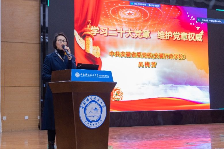 吴教授从历次党章修订、二十大党章的主要修订特点和原则、二十大党章的结构以及主要修改内容等方面做了详细论述,系统阐述了二十大党章的科学内涵和重大意义。她强调,党的二十大通过的党章修正案,充分体现了党的理论创新、实践创新、制度创新和党的建设取得的新成果,充分体现了党的二十大报告确立的重大理论观点和重大战略思想。学习贯彻党章是学习贯彻党的二十大精神的重要内容,她号召大家联系实际、深入思考,切实增强党章效力、维护党章权威。