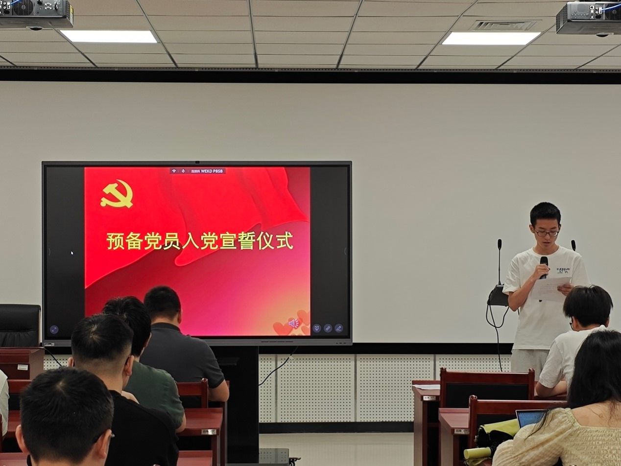 入党宣誓仪式结束后,由预备党员代表、2021级硕士生沈哲远同学发言并分享申请入党以来的心路历程与志愿实践经历后。他表示,入党宣誓是最激动人心的时刻,也是成长的新起点。在之后的学习生活中,他将坚定理想信念、牢记党的宗旨,全心全意为人民服务,加强思想理论学习,提升党性修养,认真做好科研工作,用实际行动争做合格先进的共产党员。