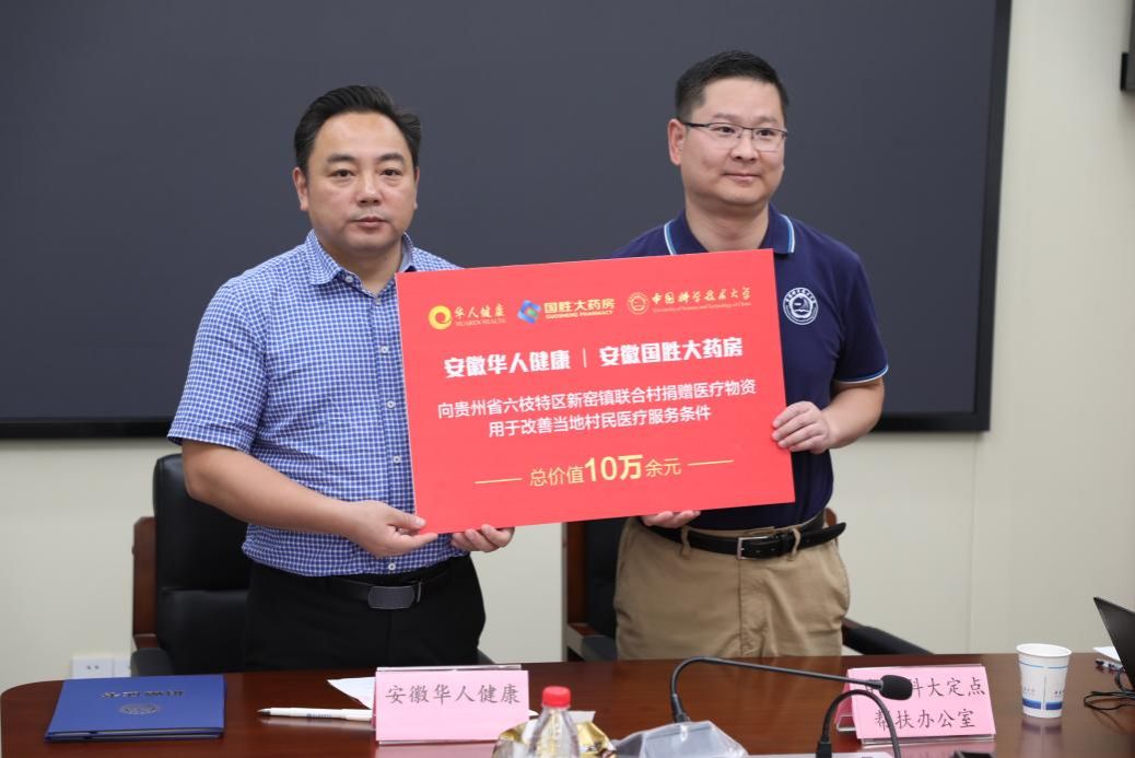 9月25日下午,马克思主义学院原理纲要教工党支部、安徽华人健康医药股份有限公司党委联学共建暨六枝特区新窑镇联合村医疗帮扶定向捐赠仪式在学院310会议室隆重举行。马克思主义学院党总支书记杨保国、中国科大定点帮扶工作领导小组办公室主任何昊华,安徽华人健康医药股份有限公司党委副书记李涛、党建指导员沈世所以及安徽国胜大药房、安徽汇达药业等企业所属党支部党员代表出席仪式。仪式由马克思主义学院原理纲要教工党支部书记苏振源主持。