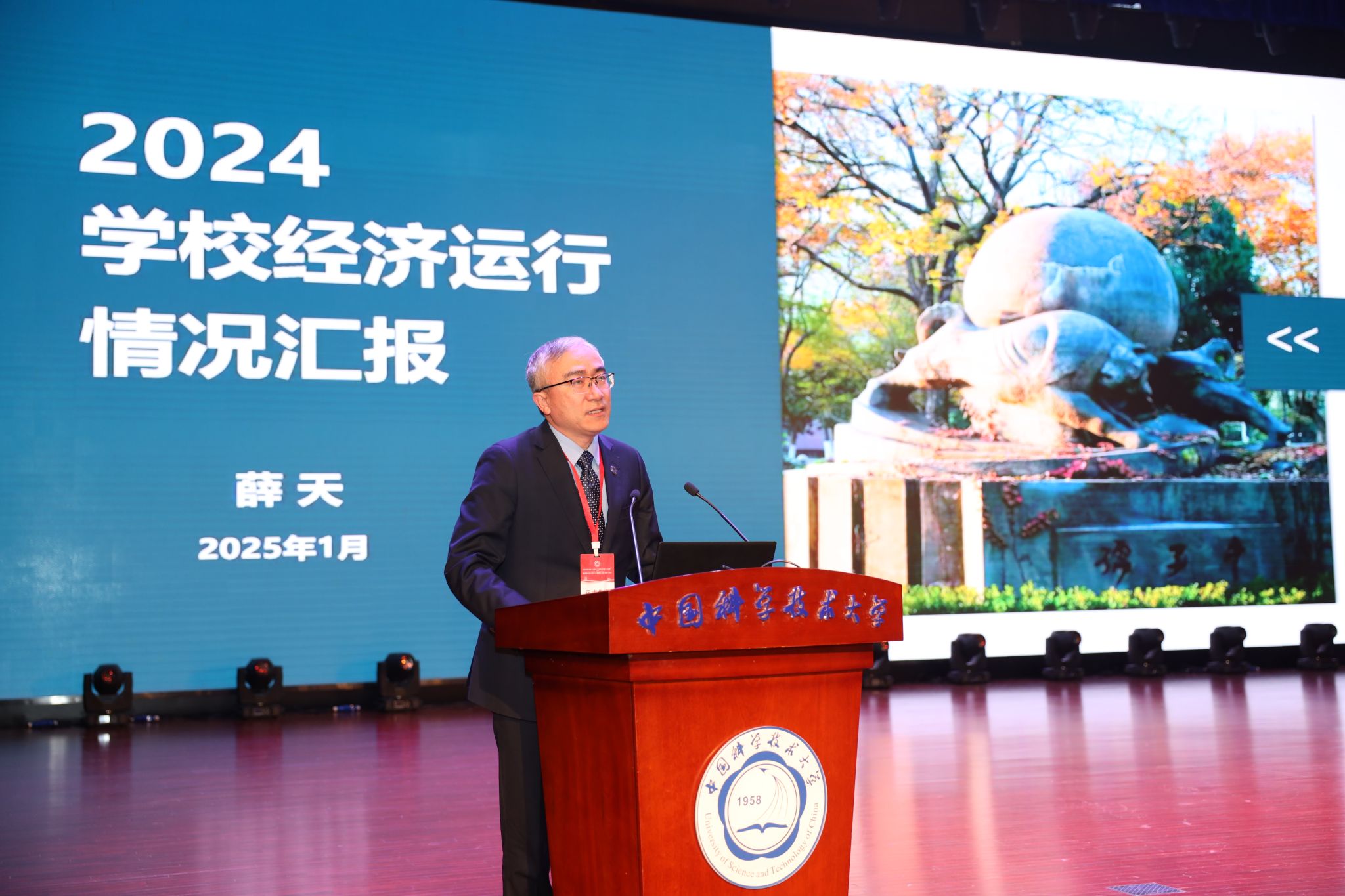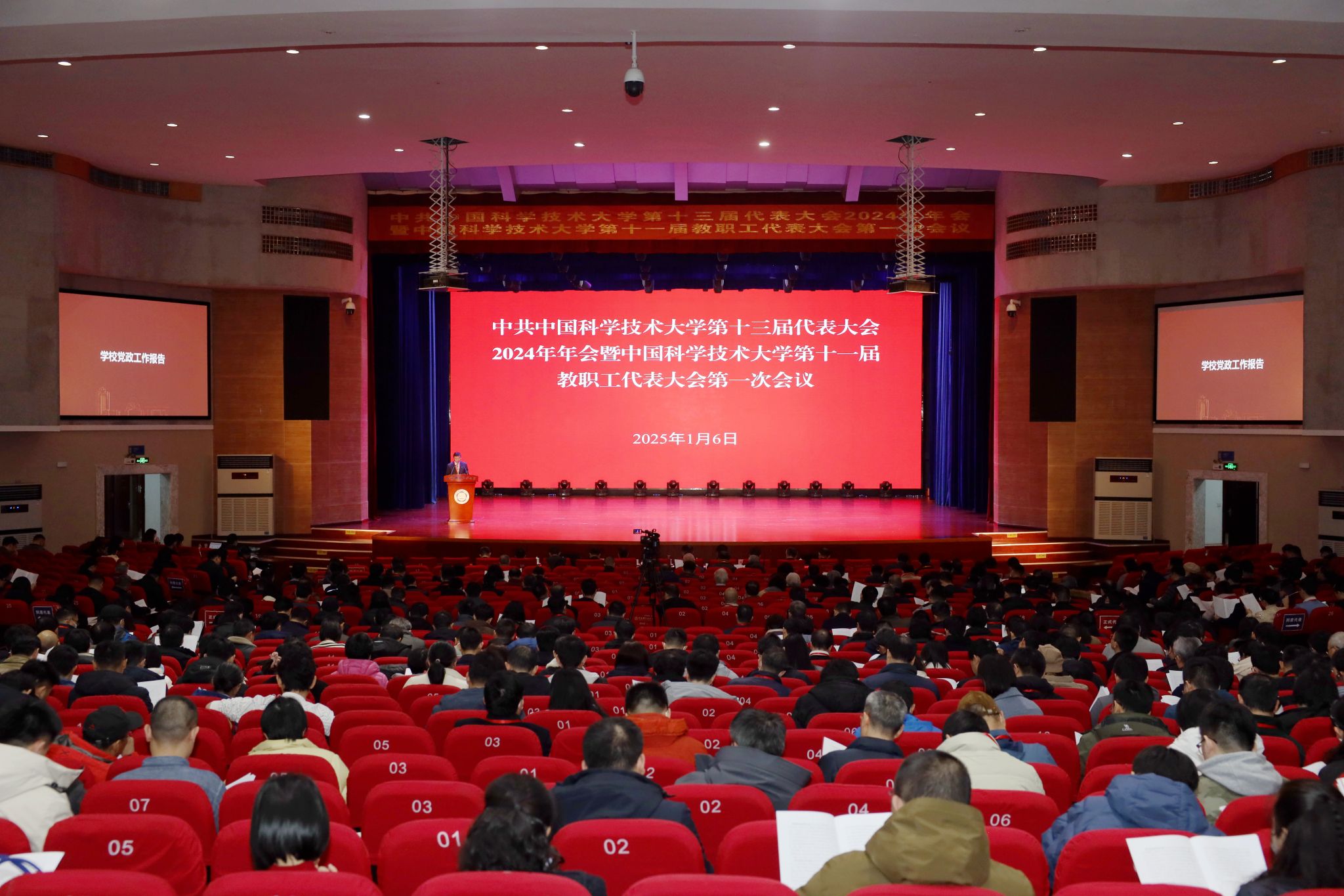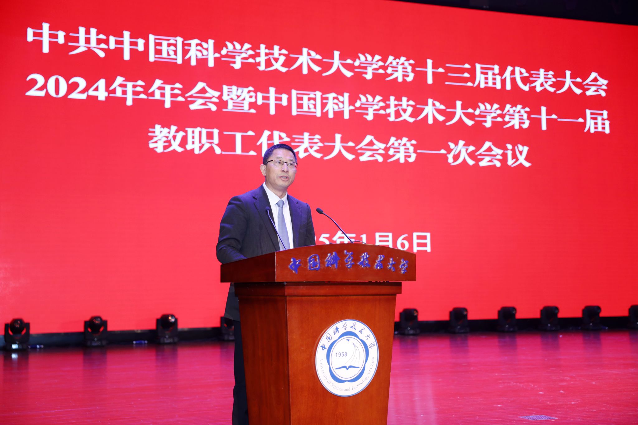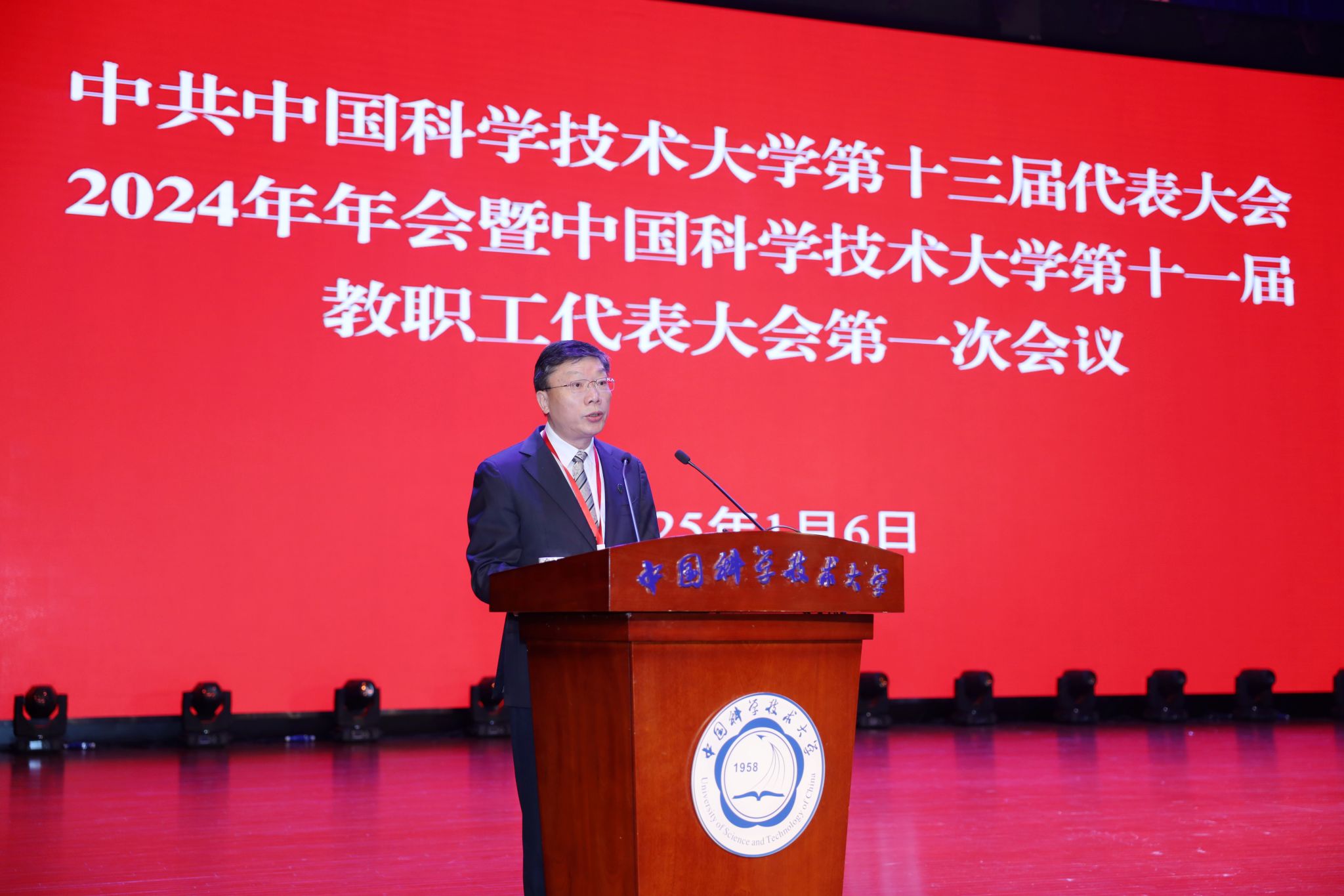 常进作题为《牢记嘱托担使命 红专并进启新程——加快建设中国特色、科大风格的世界一流大学》的党政工作报告,一年来,在中国科学院、教育部和安徽省的坚强领导下,学校党政领导班子以习近平新时代中国特色社会主义思想为指导,全面贯彻落实党的二十大和二十届二中、三中全会精神,深入学习宣传贯彻全国科技大会和全国教育大会精神,将习近平总书记关于中国科大系列重要指示精神贯穿办学治校各环节,团结带领全校广大师生员工,潜心立德树人,执着攻关创新,在基础性、战略性工作上狠下功夫,加快建设中国特色、科大风格的世界一流大学,不断推动学校事业发展取得新突破。