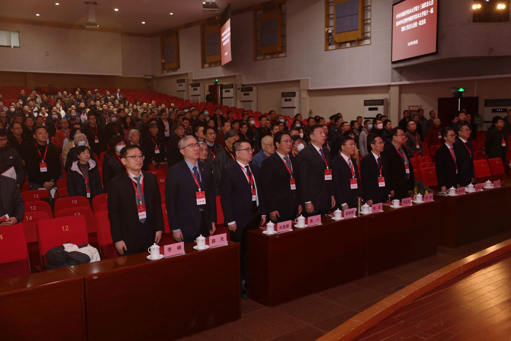 大会在庄严的国歌声中拉开序幕。