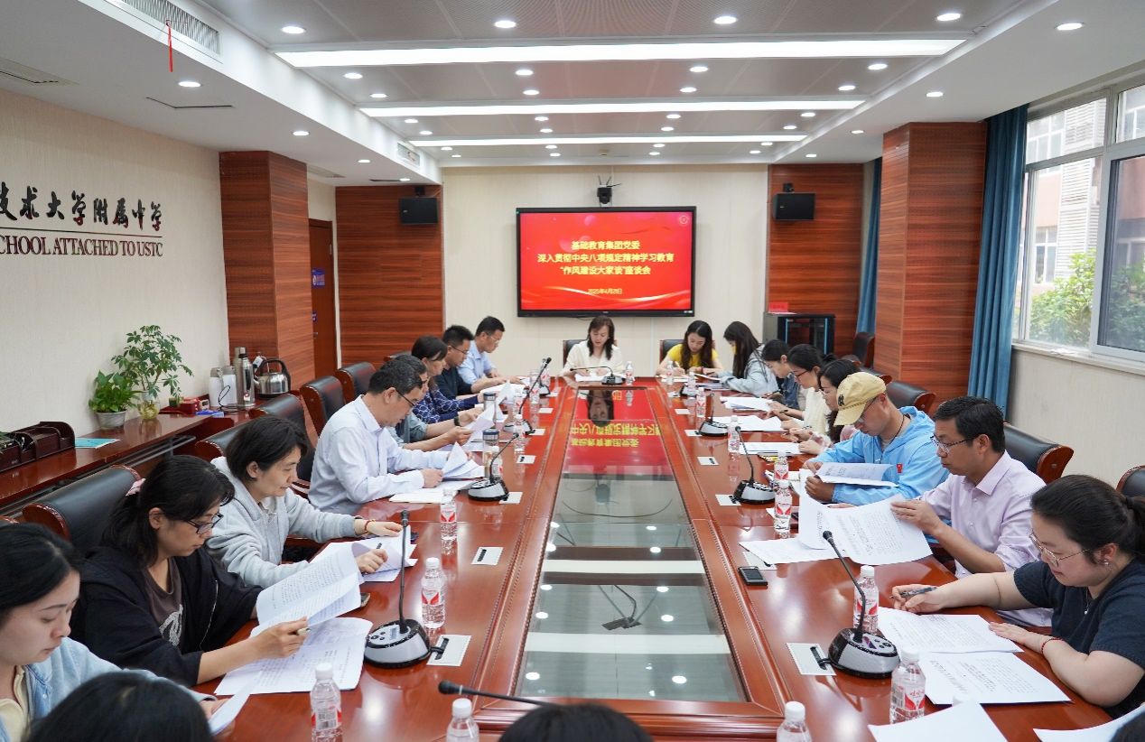 附属中学音乐教研组长潘潇直面问题,提出应建立音体美活动一站式审批机制,统筹学校各部门的活动安排,提升活动开展的效率和实效性。青年党员教师张磊、黄娟和张剑晶从育人角度提出“建立多元评价体系”等创新建议。与会人员畅所欲言,从各个角度表达对作风建设的理解和感受。