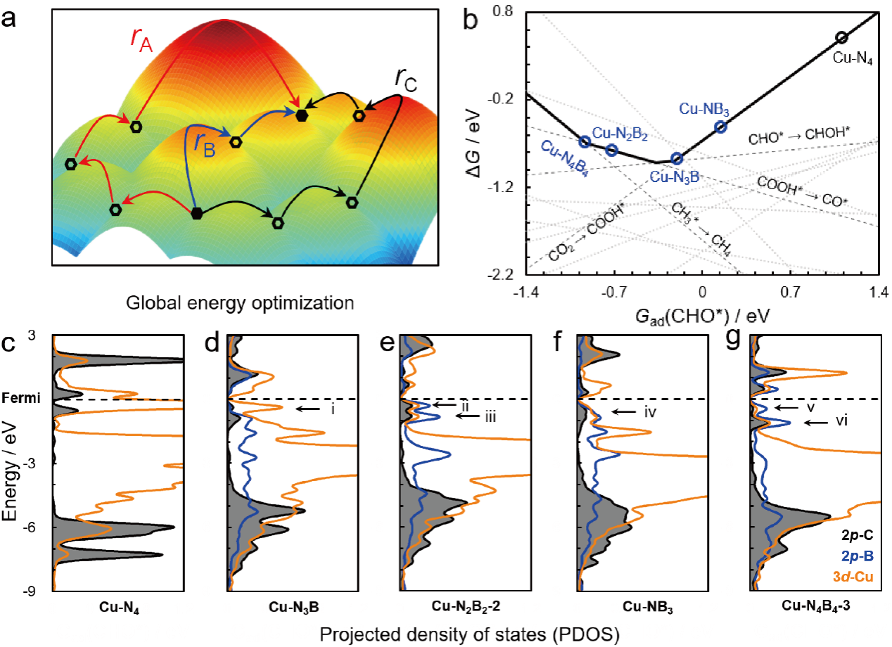 图1.Cu-NxBy位点二氧化碳电还原到甲烷的理论预测