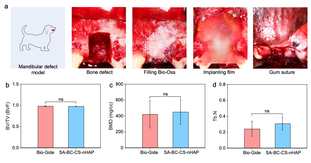 图3.犬下颌骨修复实验表明双层膜具有良好的成骨能力。