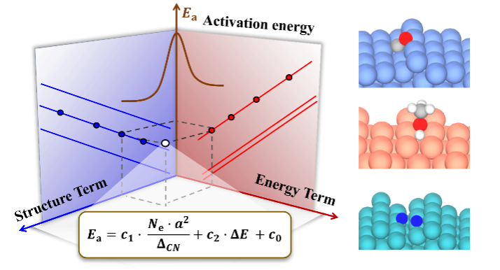 催化反应活性位及其结构敏感性是多相催化研究中最为重要的基本概念之一。尽管近年来研究取得了很大进展,但由于影响因素众多并横跨多个空间和时间尺度,如何在原子尺度上确定催化反应的活性位及其结构敏感性,依然是催化材料理性设计中所面临的一大挑战。举例来说,活化能与反应热之间的Brønsted–Evans–Polanyi(BEP)关系以及不同分子吸附能之间的线性标度律,长期以来被视为催化反应机理和催化优化设计的最重要的基本研究框架。但是,由于BEP关系和标度律中缺乏催化剂几何结构和化学组分的明确信息,这使它们原则上无法描述催化结构敏感性,从而极大限制了催化剂的优化设计研究。