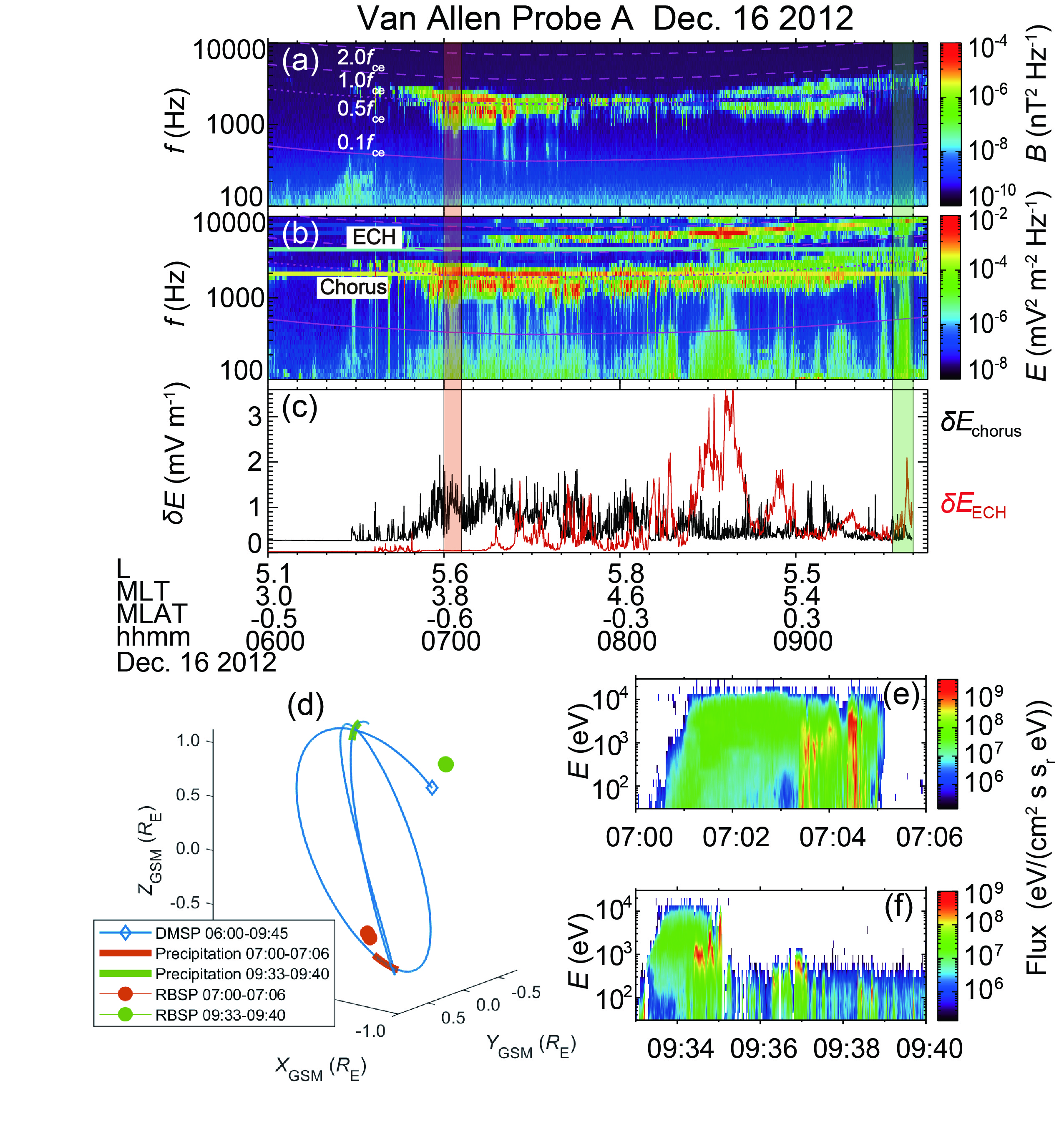 弥散极光是极区电离层能量输入的重要来源,是地球磁层与电离层之间的强耦合机制。地球磁层中等离子体波动通过共振散射使电子进入损失锥,进而沉降至大气层并与大气分子碰撞,最终形成弥散极光。哨声模合声波和静电电子回旋谐波(ECH波)被认为是引起弥散极光形成的两个最为重要的波模。如果依据理论推测,那么这两种波动在磁层中对弥散极光的贡献应该是相当的。然而,观测结果却表明,合声波主导了弥散极光的形成。如何解释这一矛盾,是目前亟待解决的科学难题。